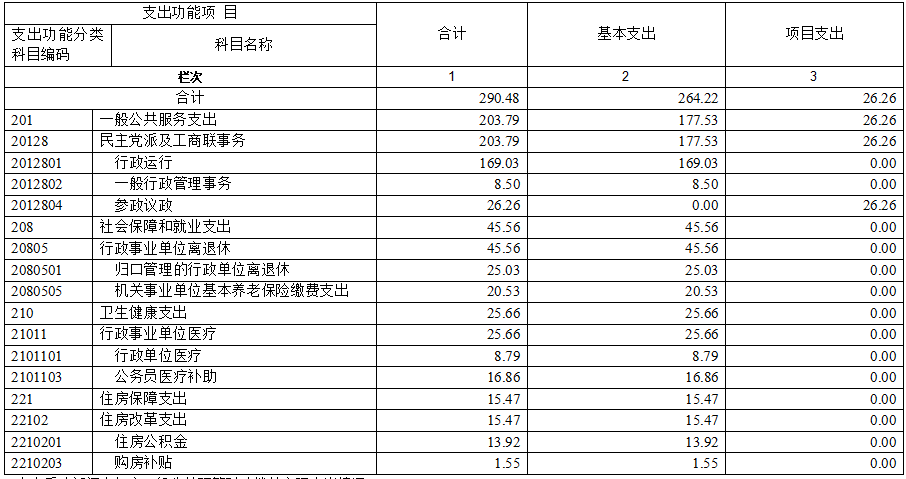 本年支出合计290.48万元(逐项说明),其中:基本支出264.22万元,占90.96%;项目支出26.26万元, 占9.04%;经营支出0万元,占0%。