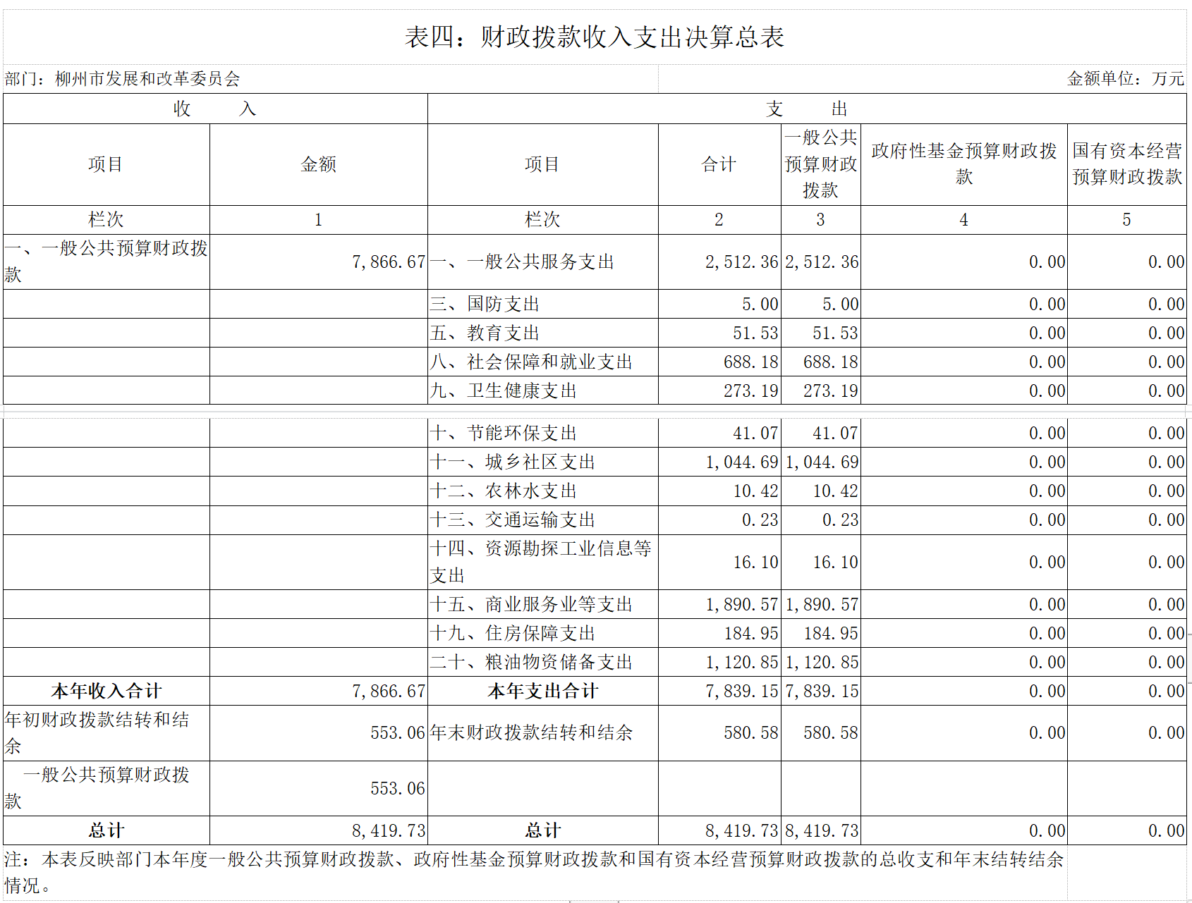 表四:财政拨款收入支出决算总表