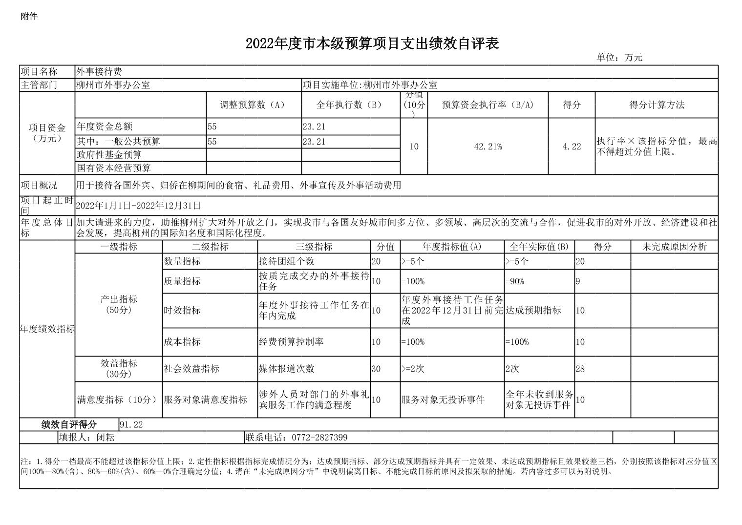 附件:柳州市外事办公室2022年度预算项目支出绩效自评表.xlsx