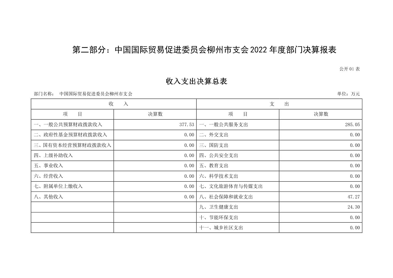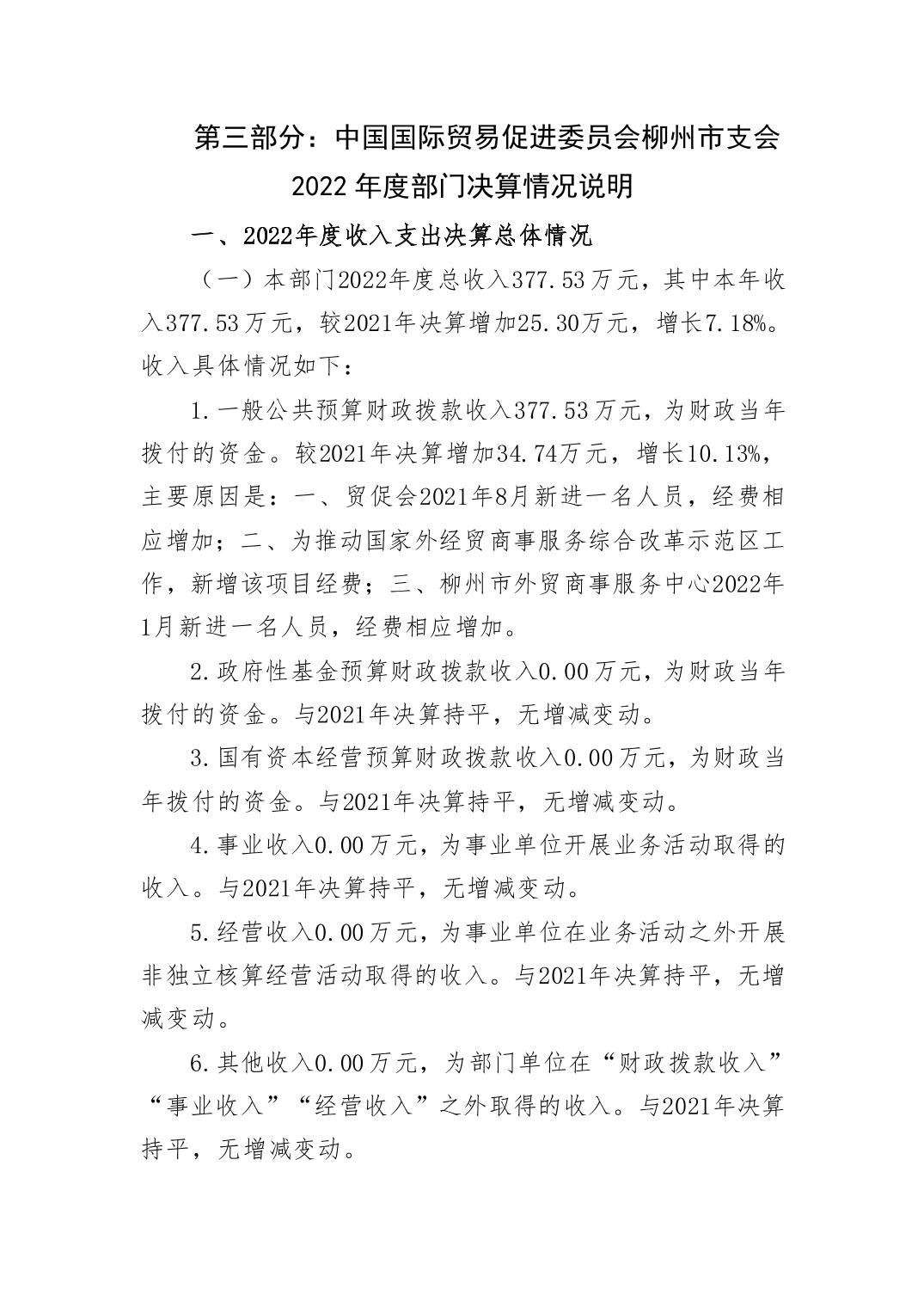 中国国际贸易促进委员会柳州市支会2022年度部门决算 - 2022 - 广西博彩公司网址网站