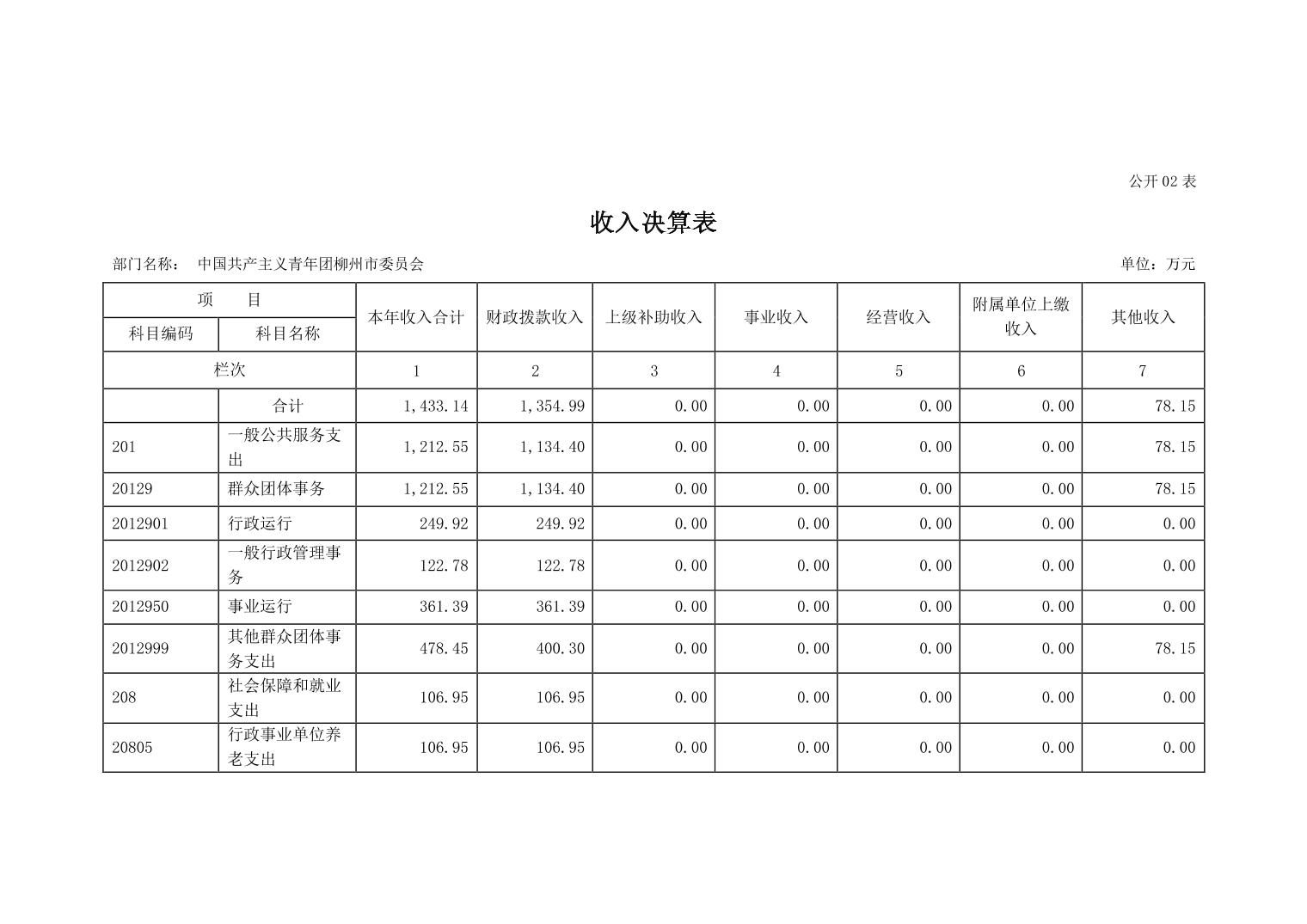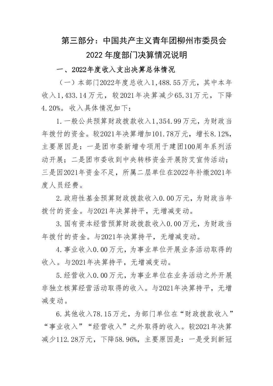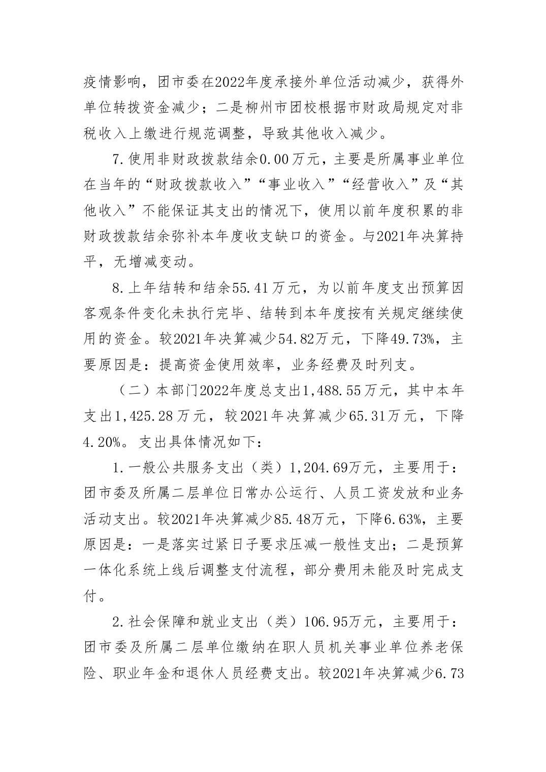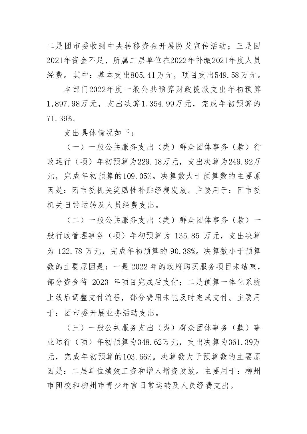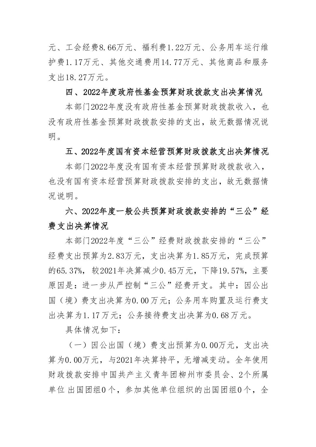 2022年中国共产主义青年团柳州市委员会部门决算 - 2022 - 广西博彩导航网网站