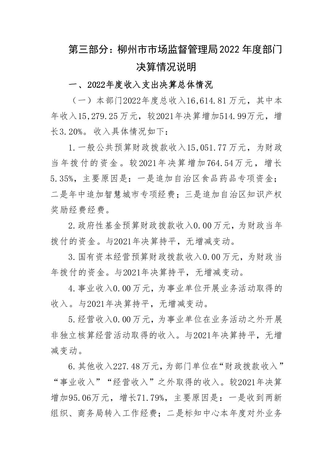 柳州市市场监督管理局2022年度部门决算 - 2022 - 广西博彩导航网网站