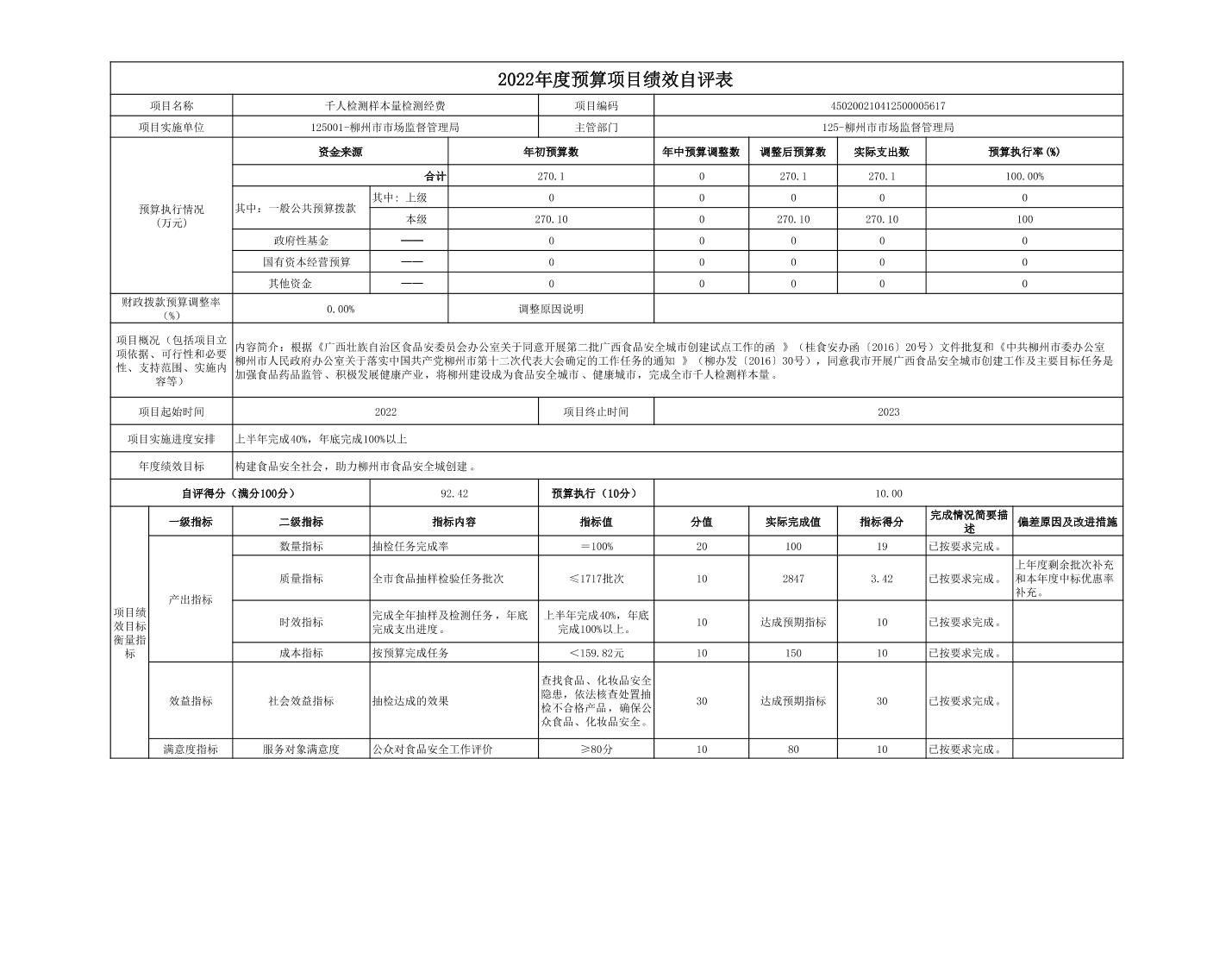 项目支出绩效自评表_千人检测样本量检测经费.pdf
