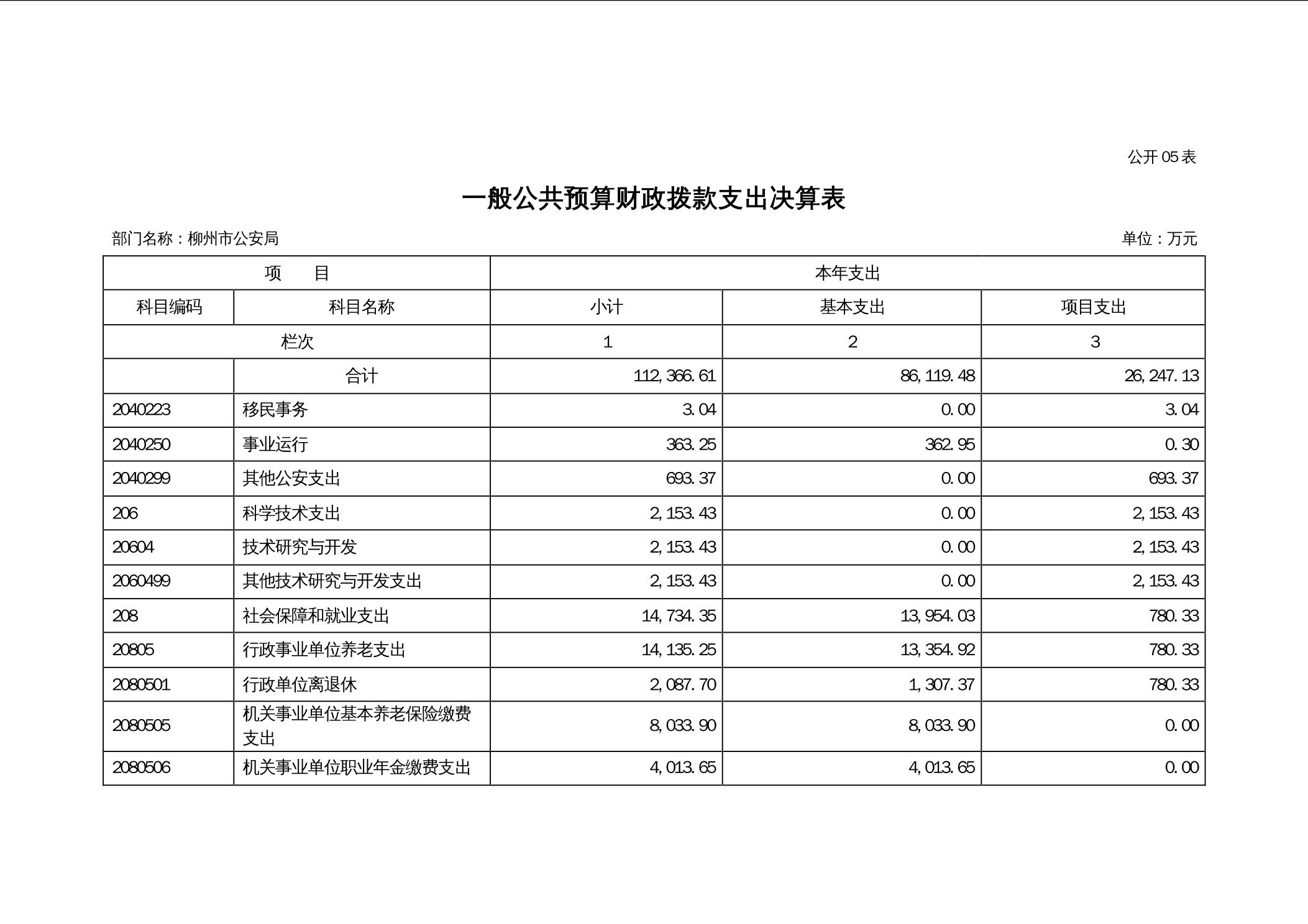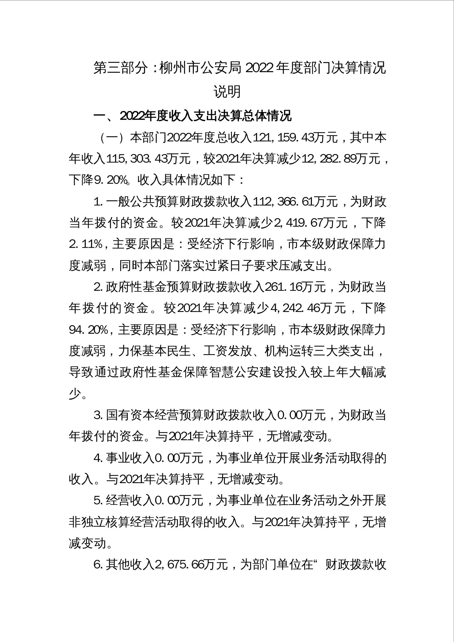 柳州市公安局2022年度部门决算 - 2022 - 广西博彩导航网网站