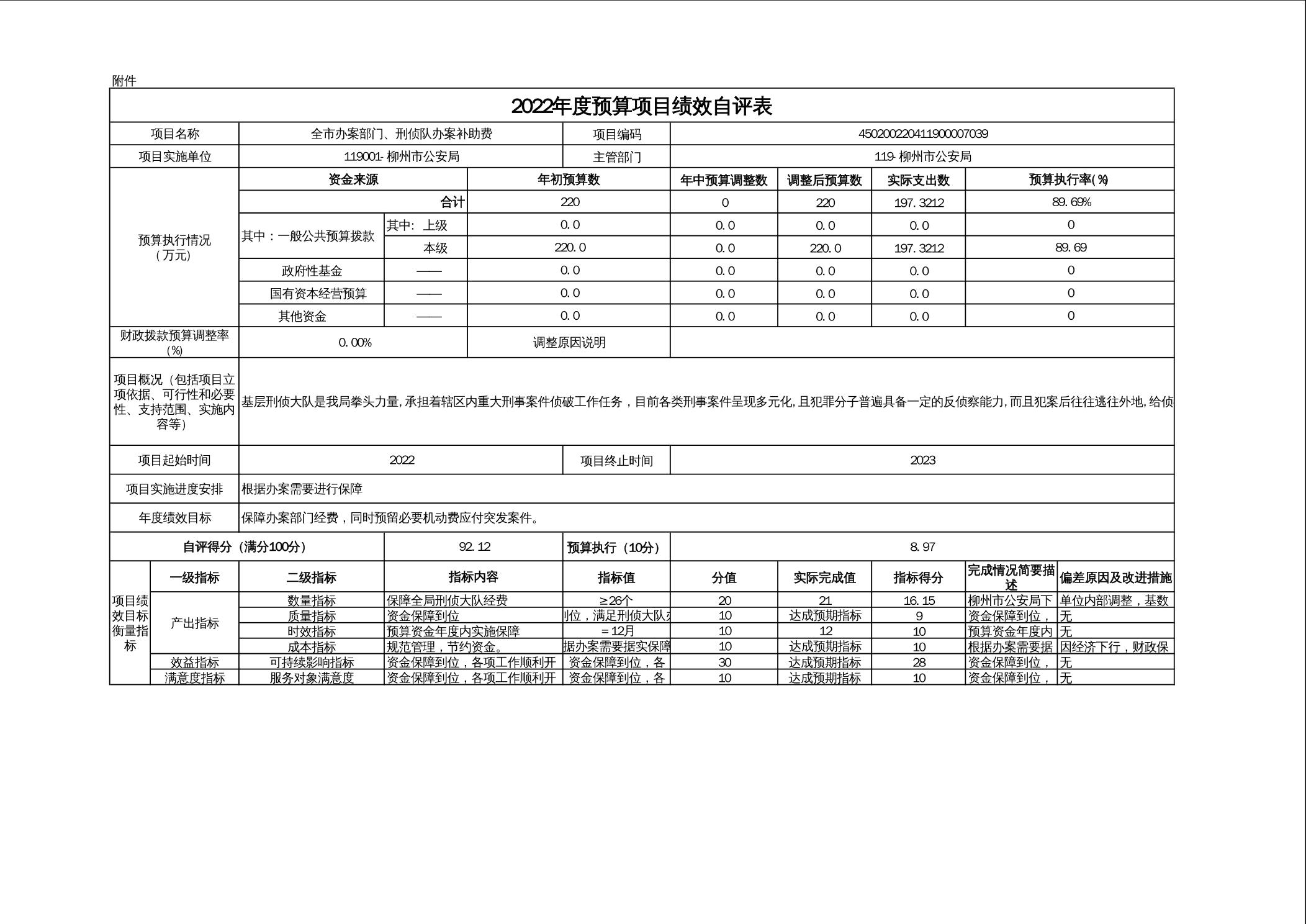柳州市公安局(全市办案部门、刑侦队办案补助费)项目支出绩效自评表.pdf