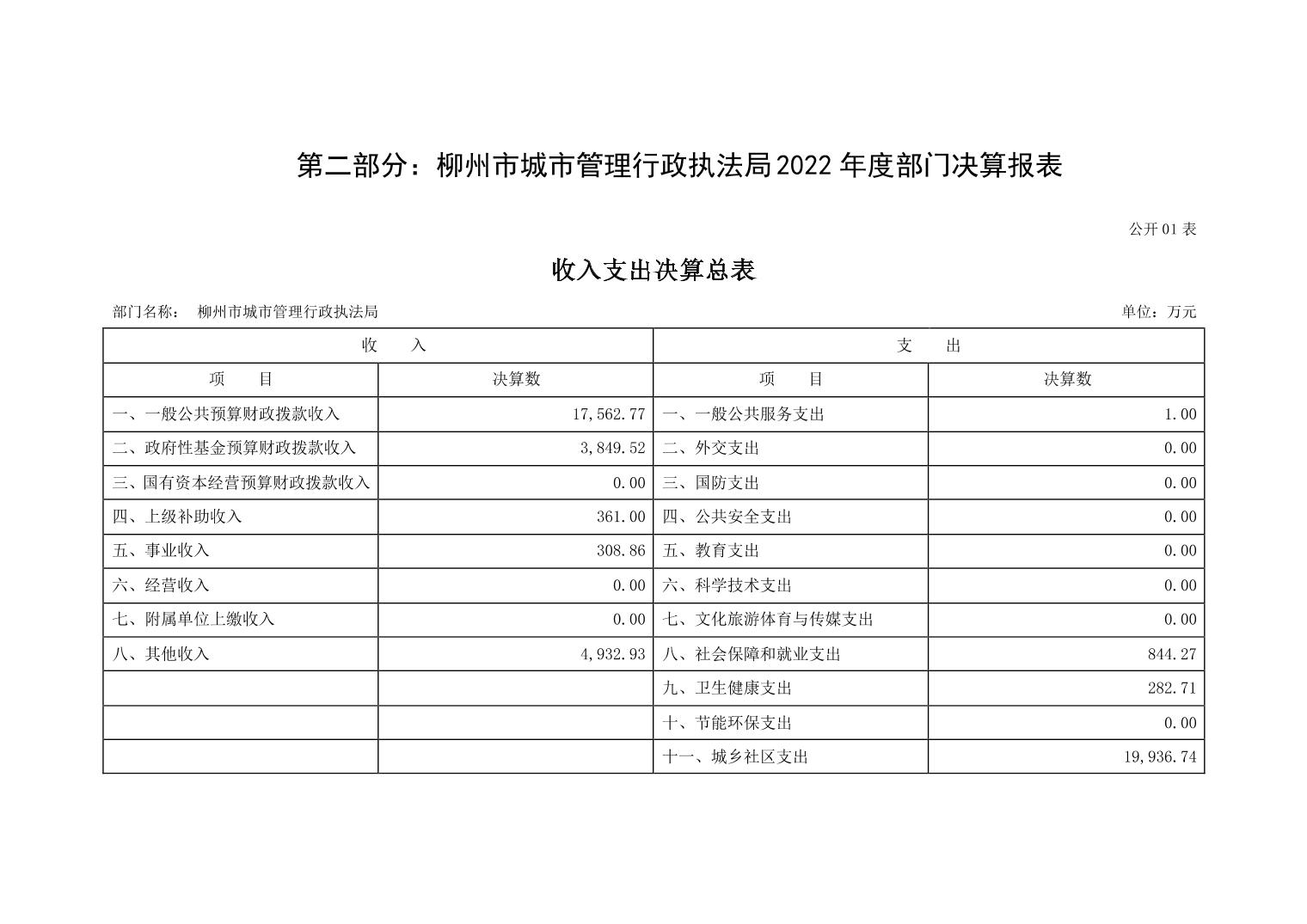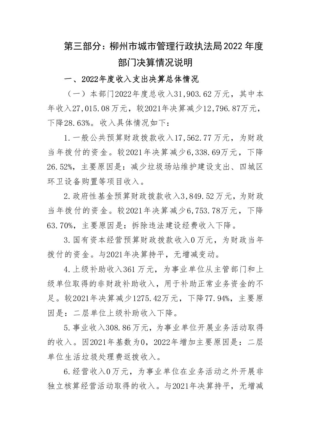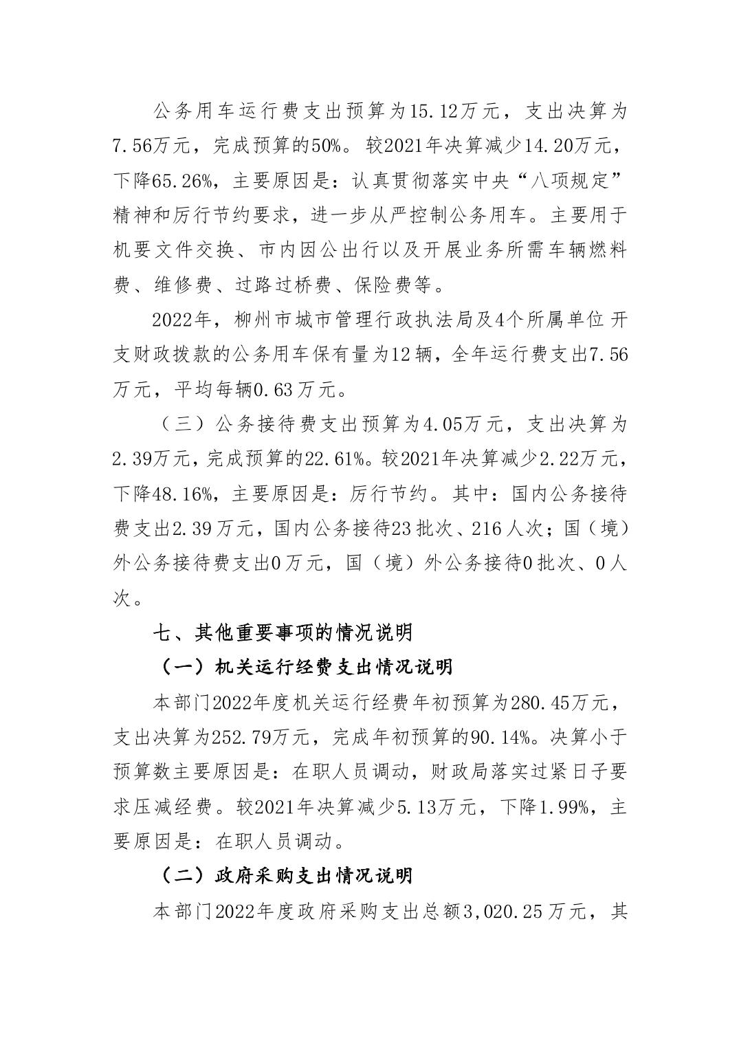 柳州市城市管理行政执法局2022年部门决算 - 2022 - 广西博彩公司网址网站
