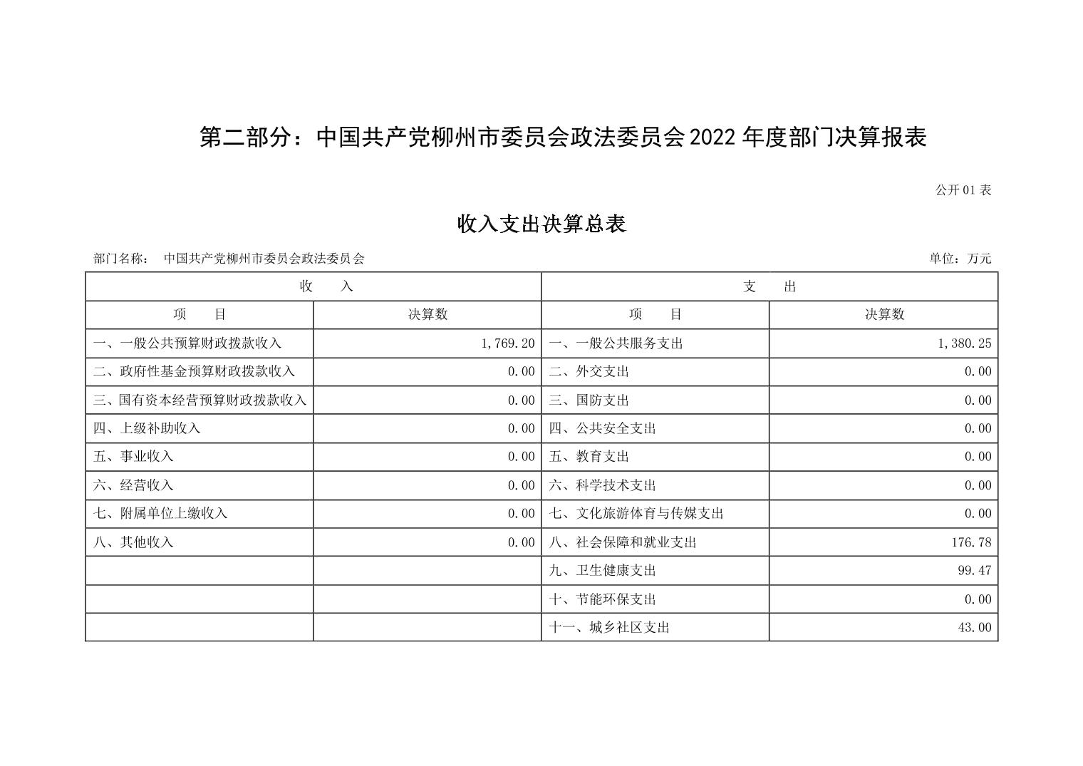 中国共产党柳州市委员会政法委员会2022年度部门决算 - 2022 - 广西博彩公司网址网站