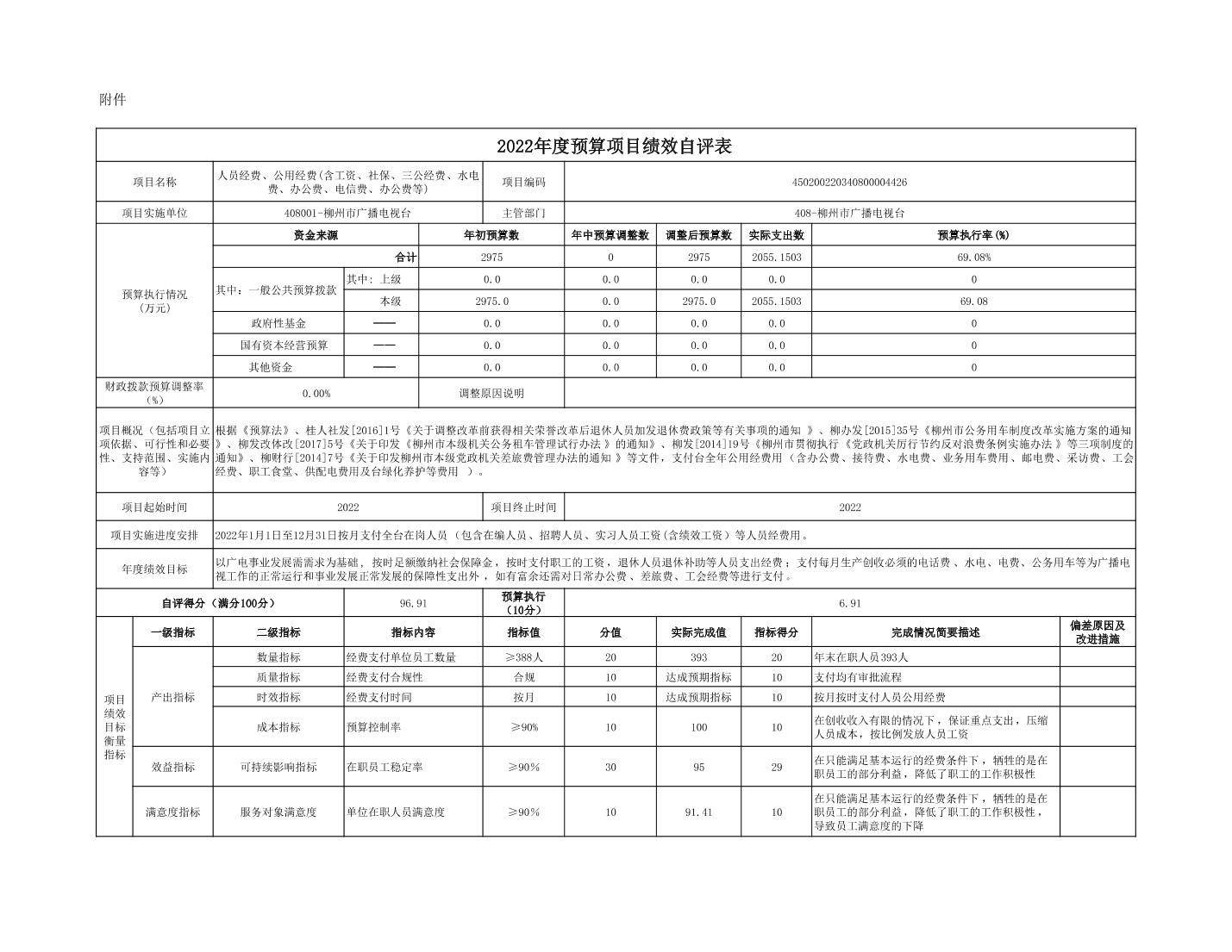 2022年柳州市广播电视台项目支出绩效自评表.xls