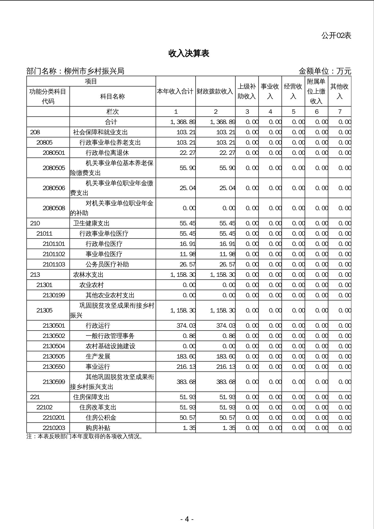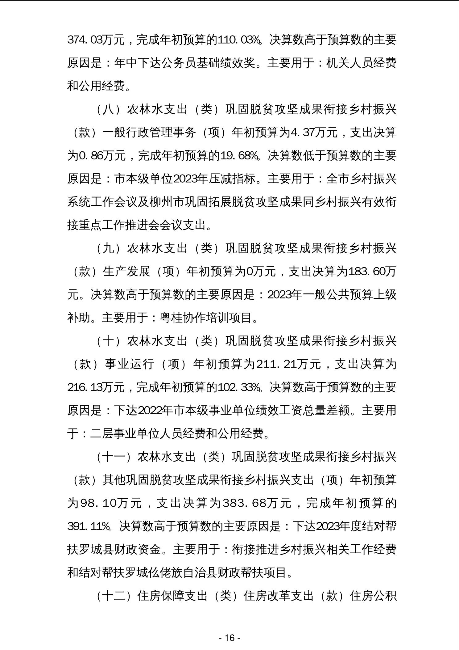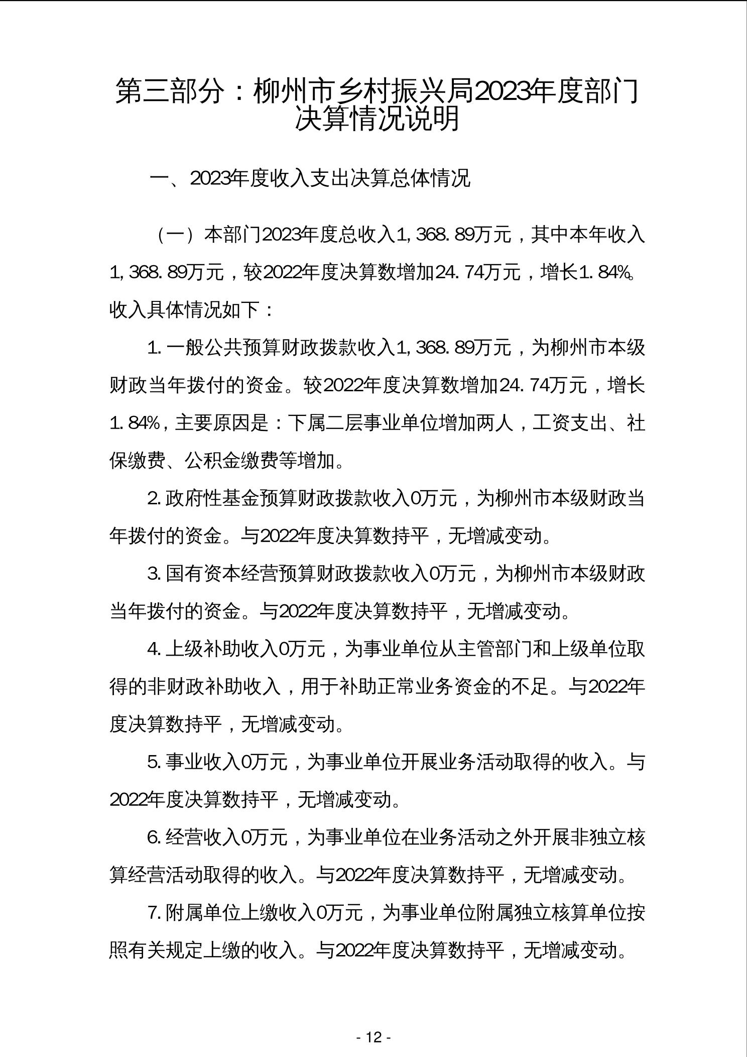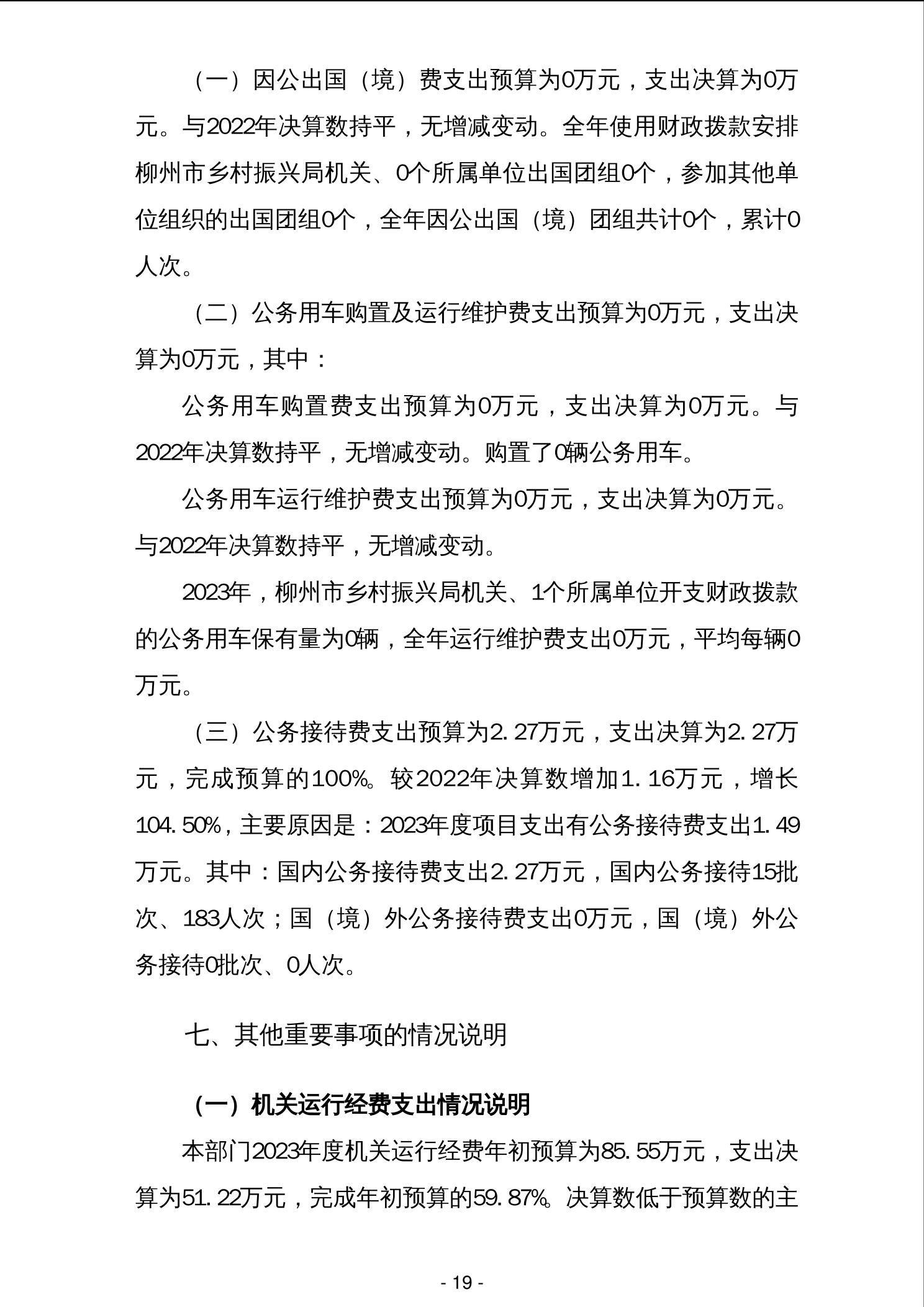 柳州市乡村振兴局2023年度部门决算 - 2023 - 广西博彩导航网网站