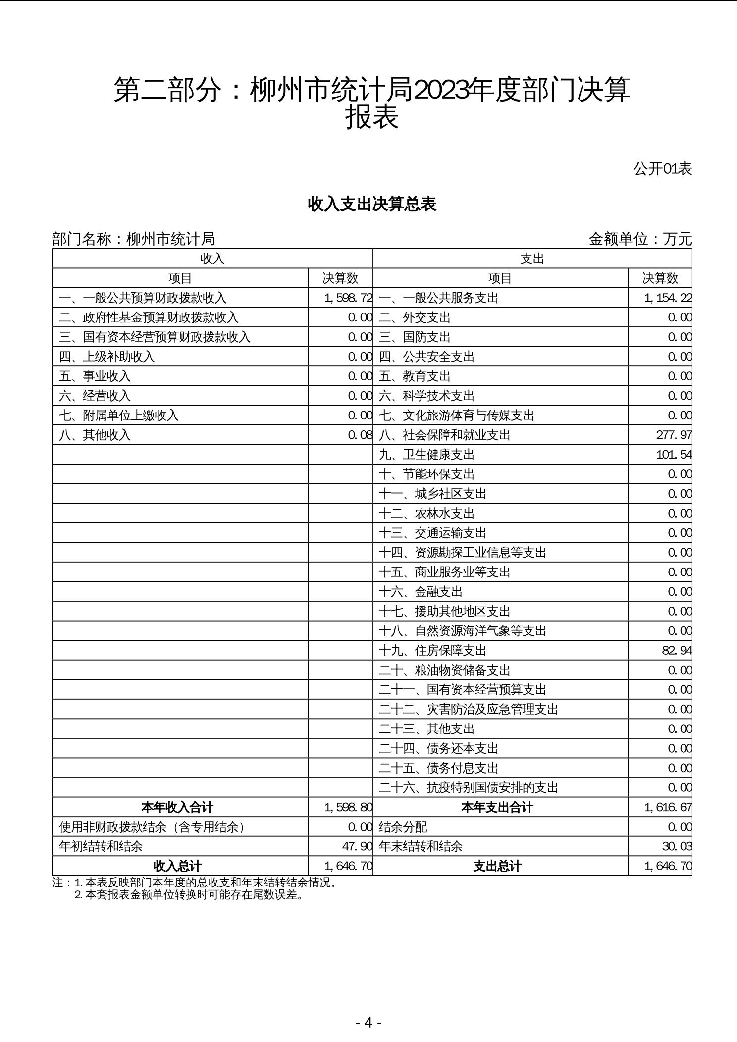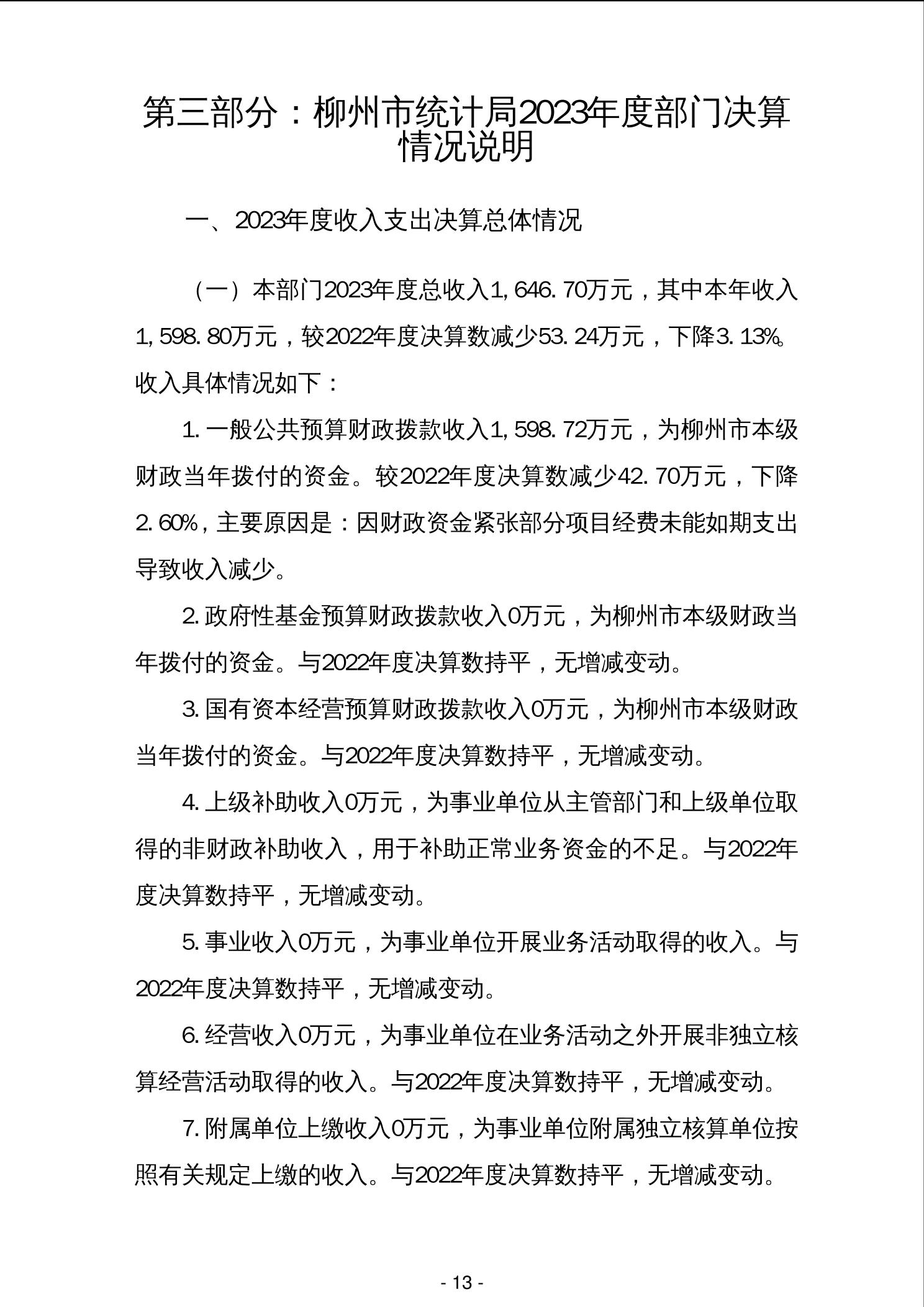 2023年柳州市统计局部门决算 - 2023 - 广西博彩导航网网站