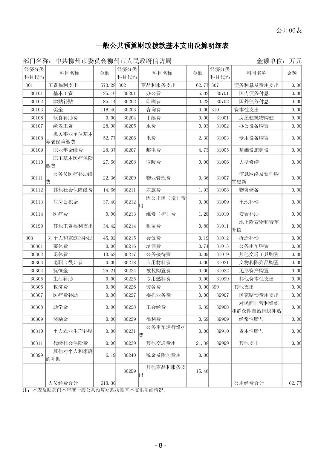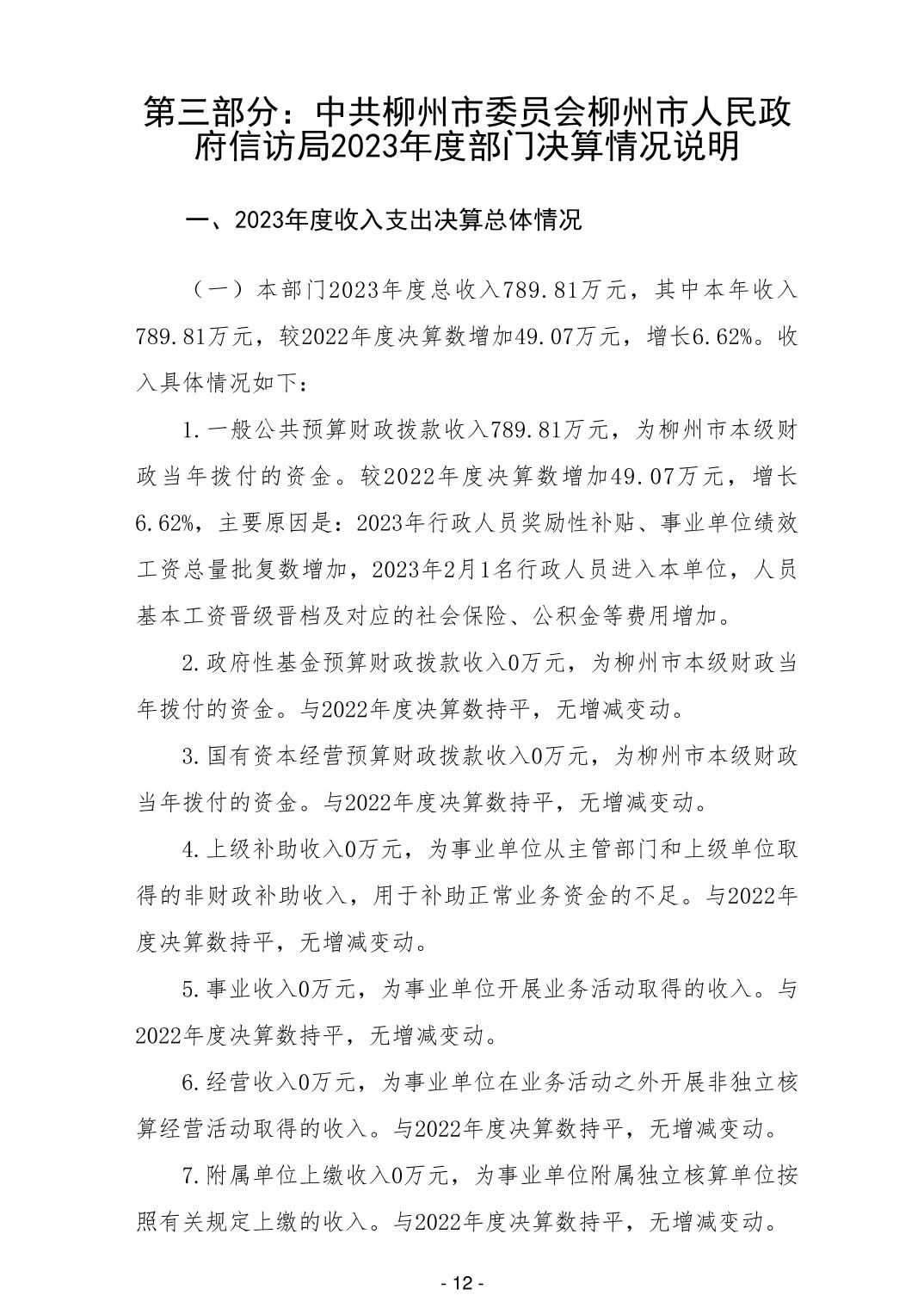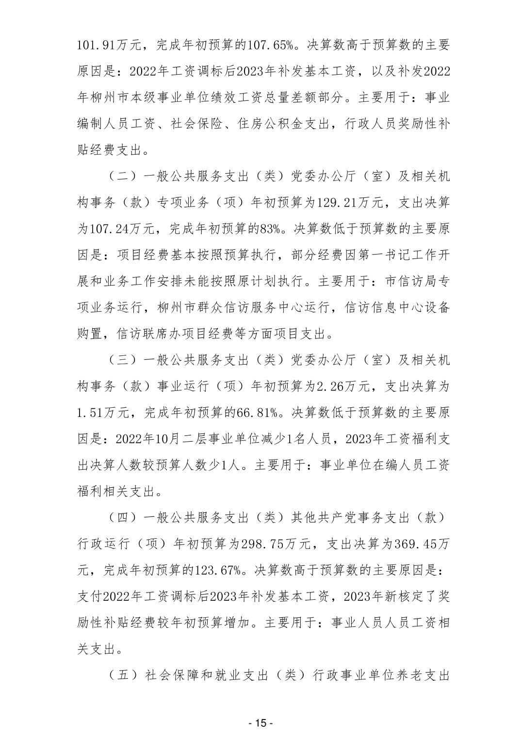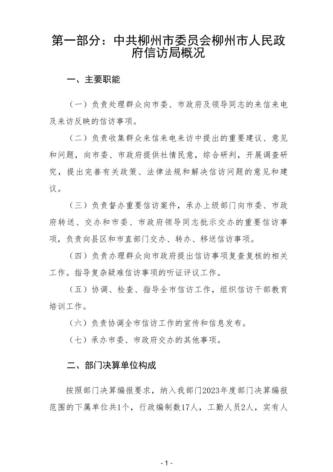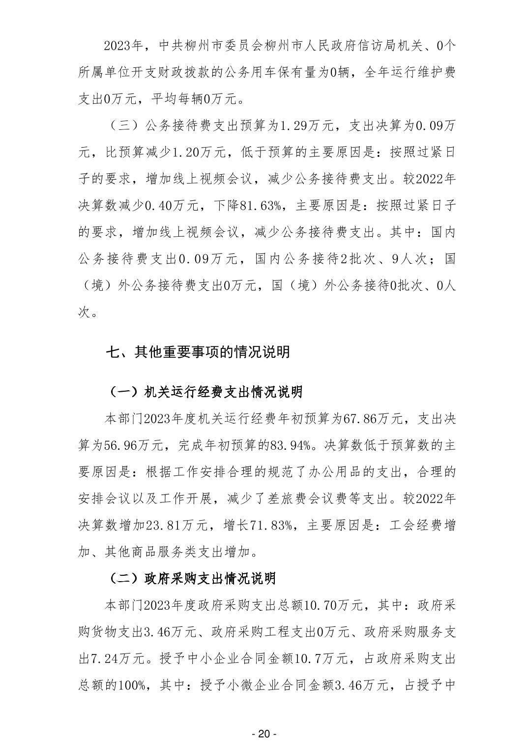 2023年中共柳州市委员会柳州市人民政府信访局部门决算 - 2023 - 广西博彩公司网址网站