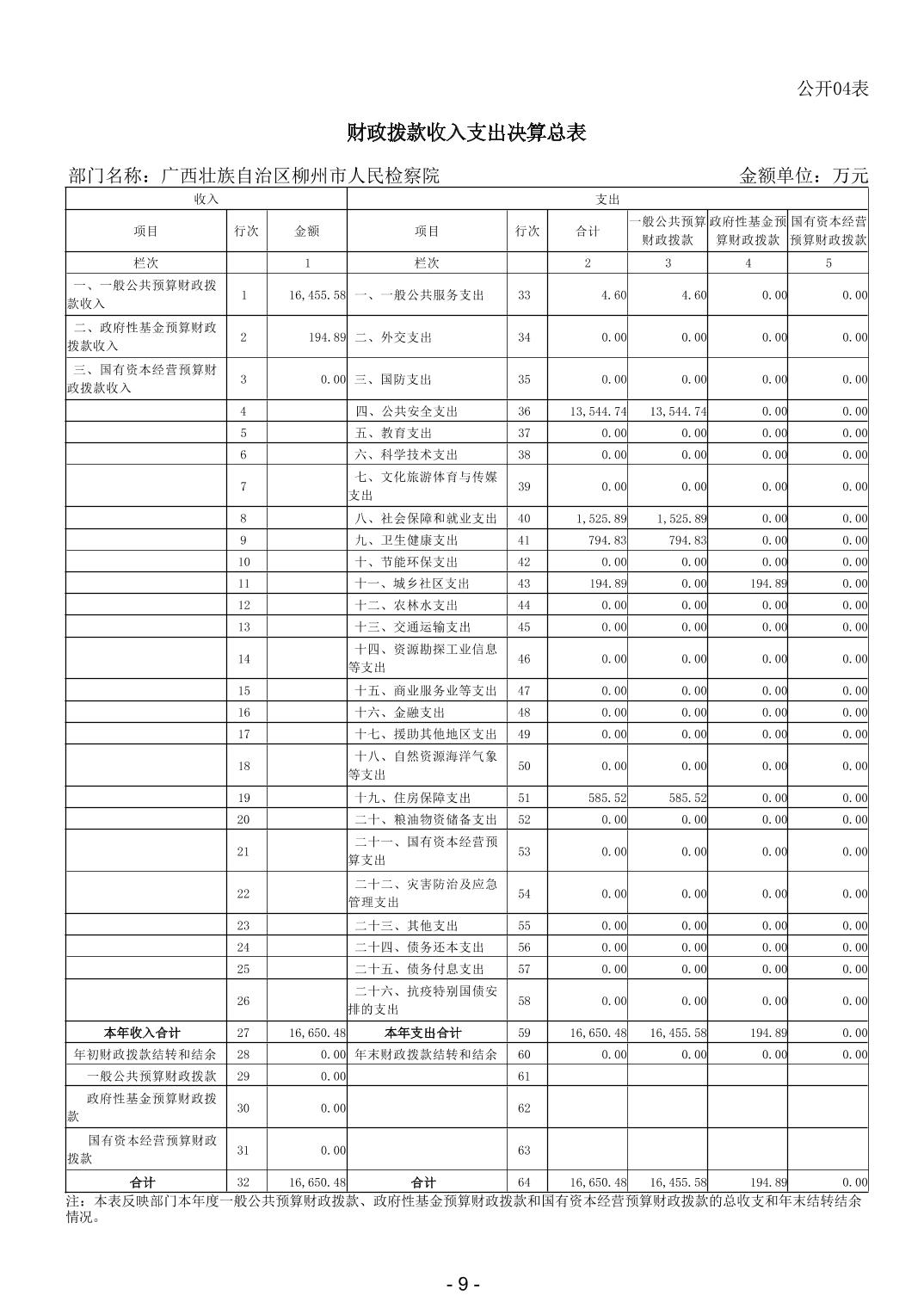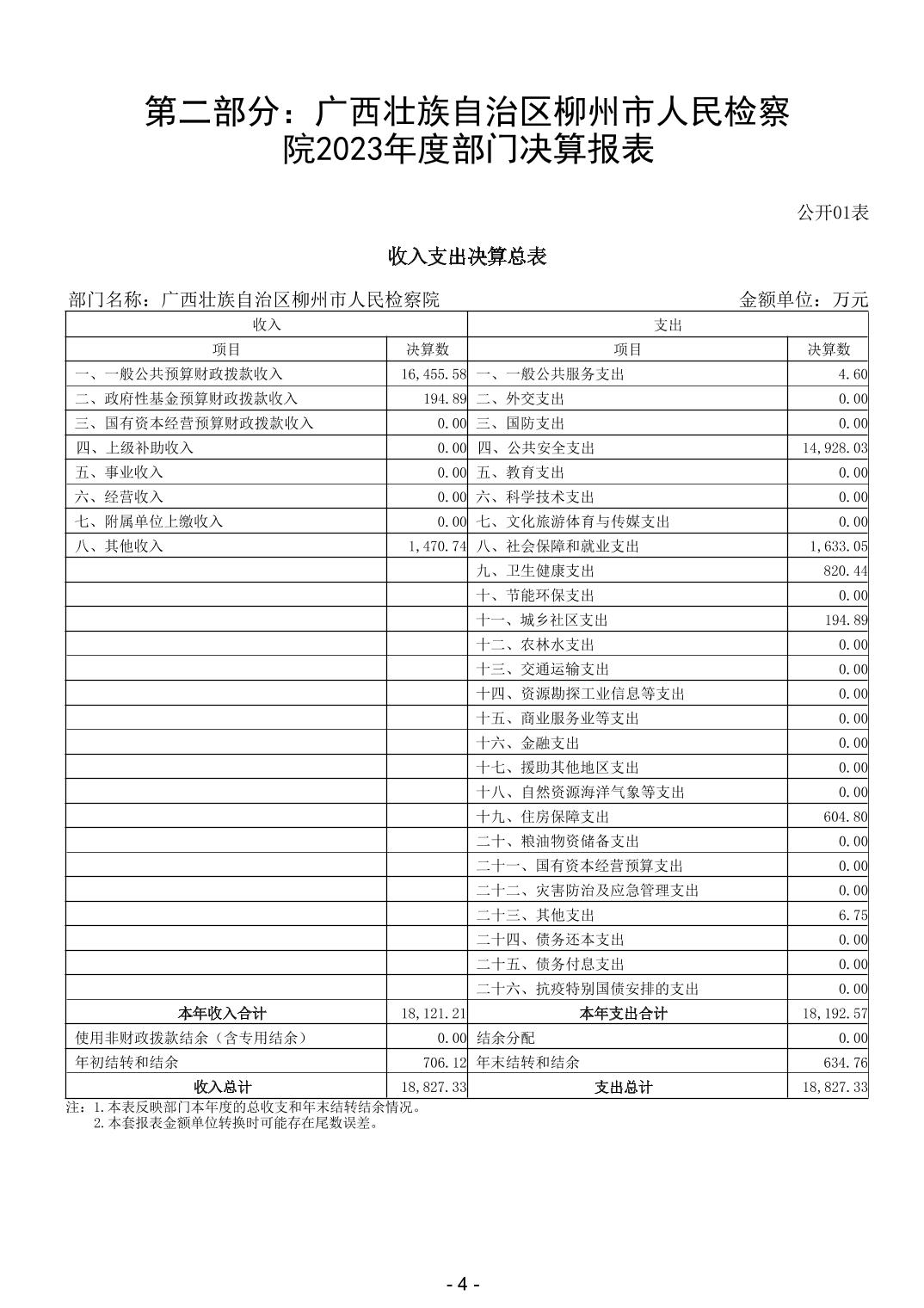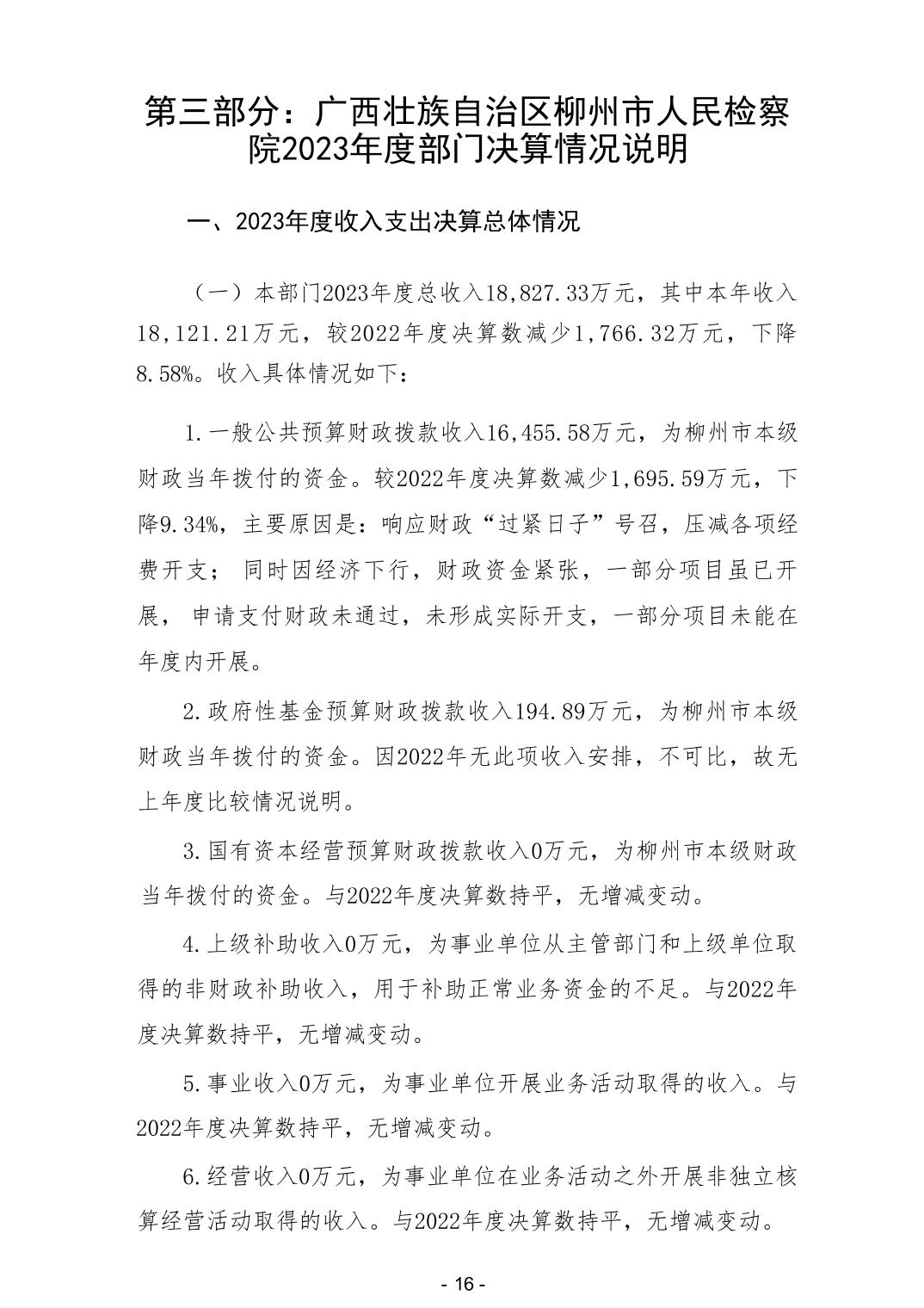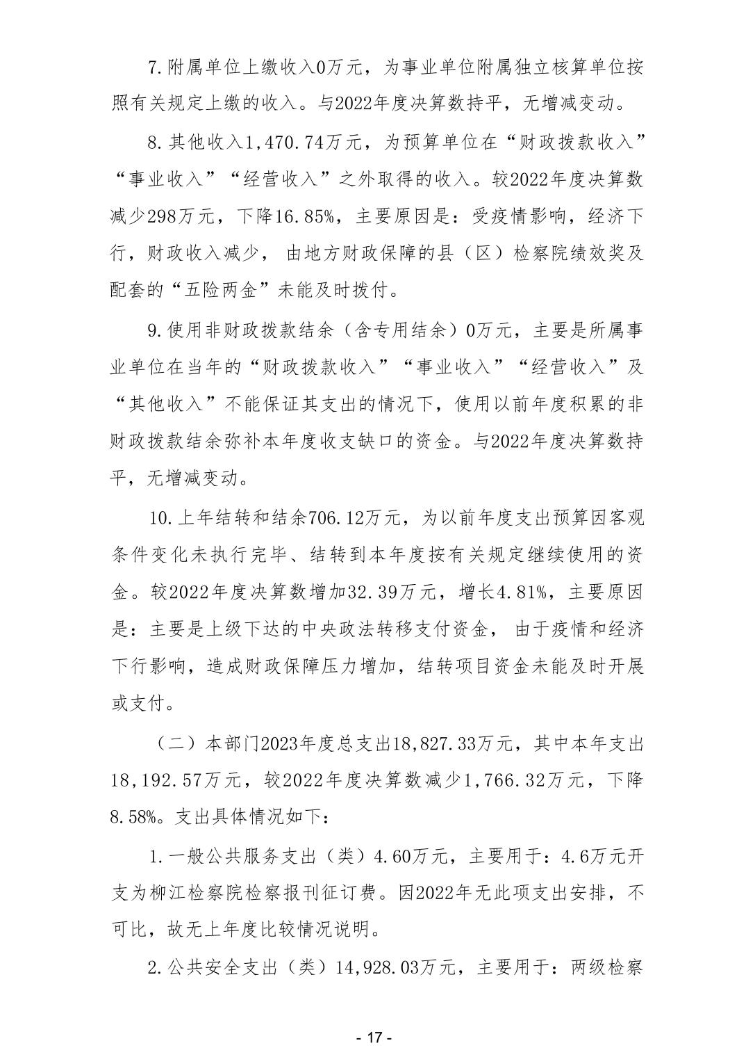 2023年广西壮族自治区柳州市人民检察院部门决算 - 2023 - 广西博彩导航网网站