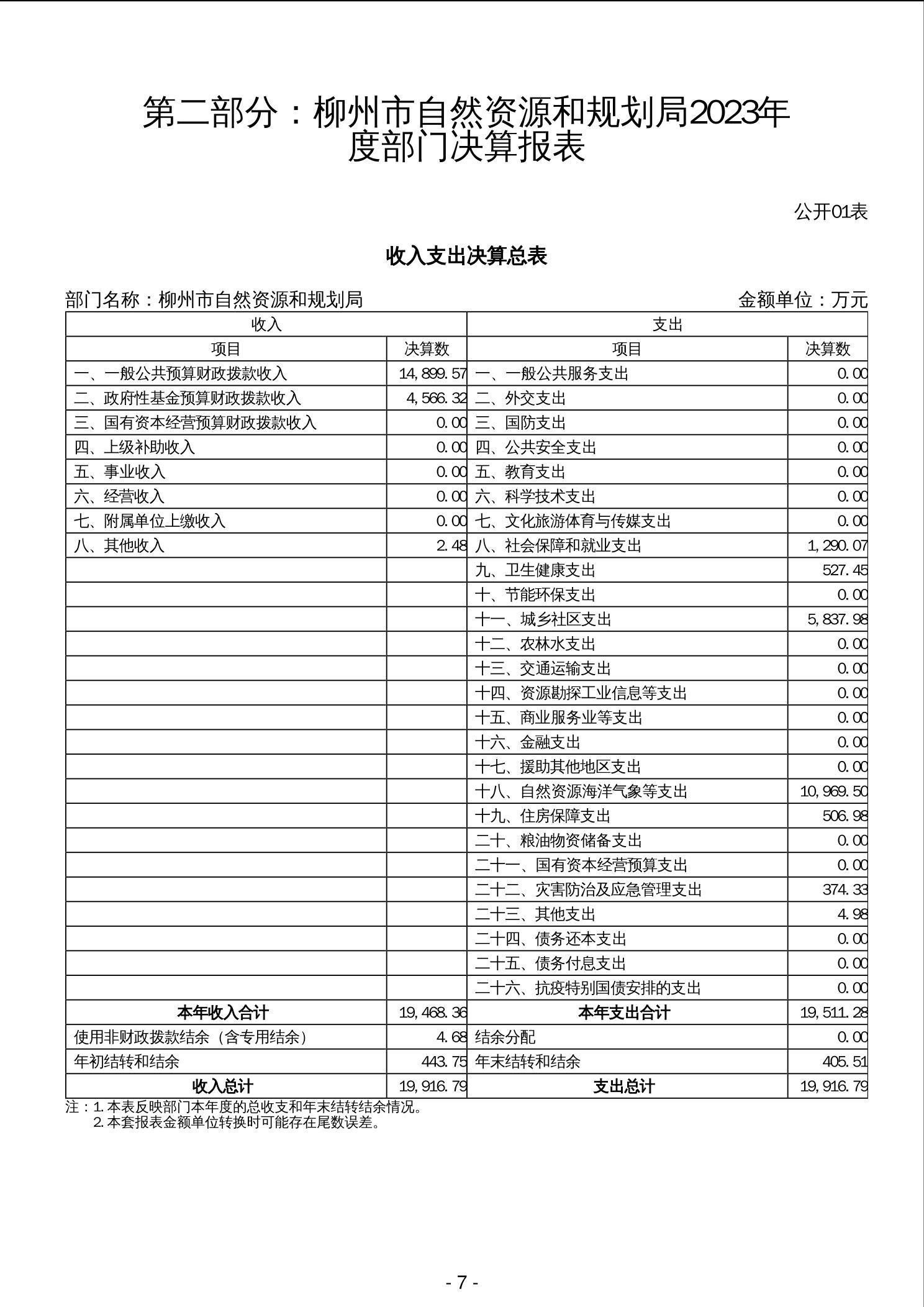 柳州市自然资源和规划局2023年度部门决算 - 2023 - 广西博彩导航网网站