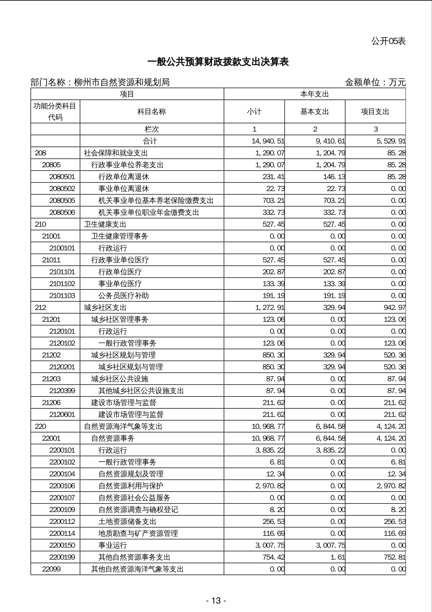 柳州市自然资源和规划局2023年度部门决算