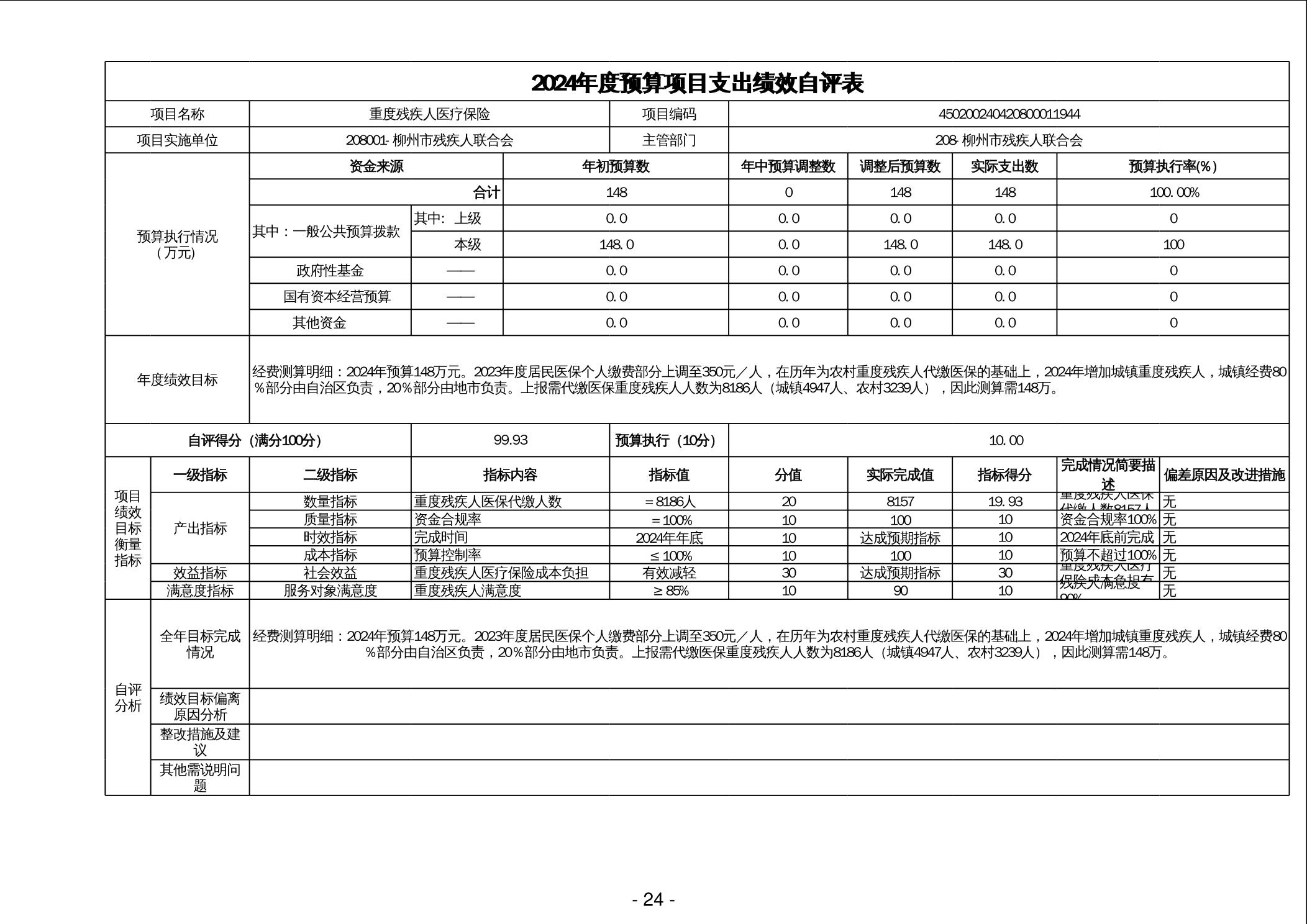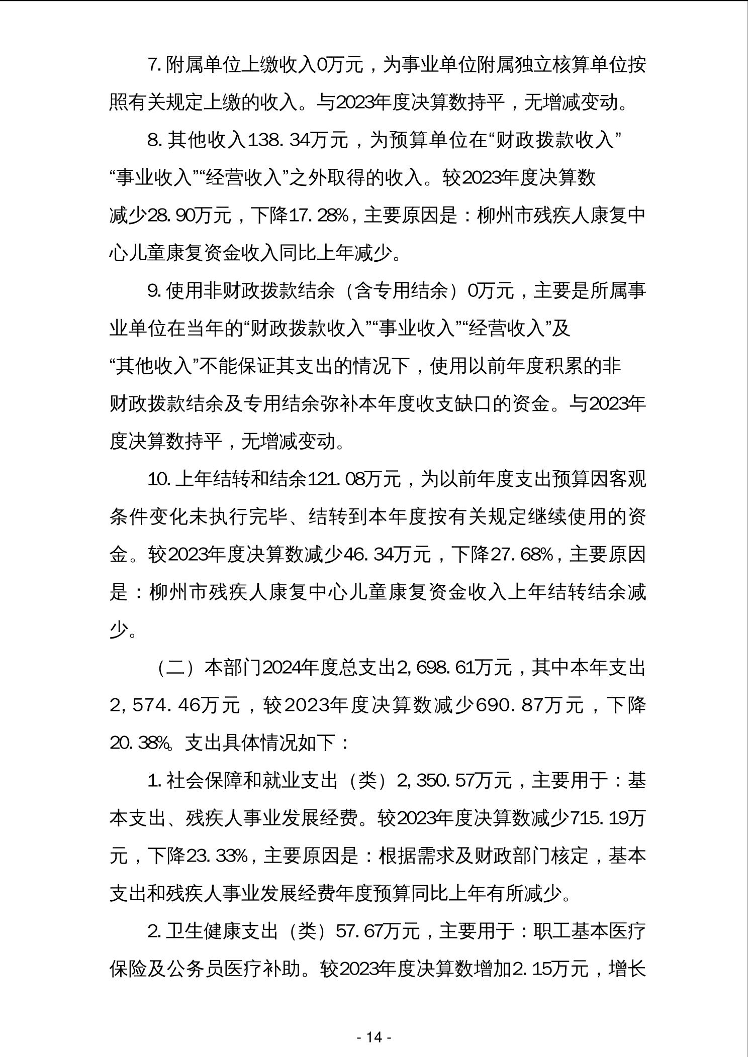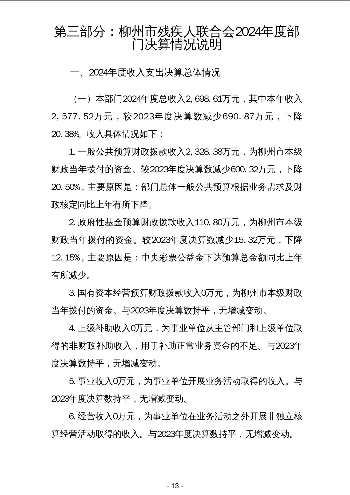 柳州市残疾人联合会2024年度部门决算 - 2024 - 广西博彩公司网址网站