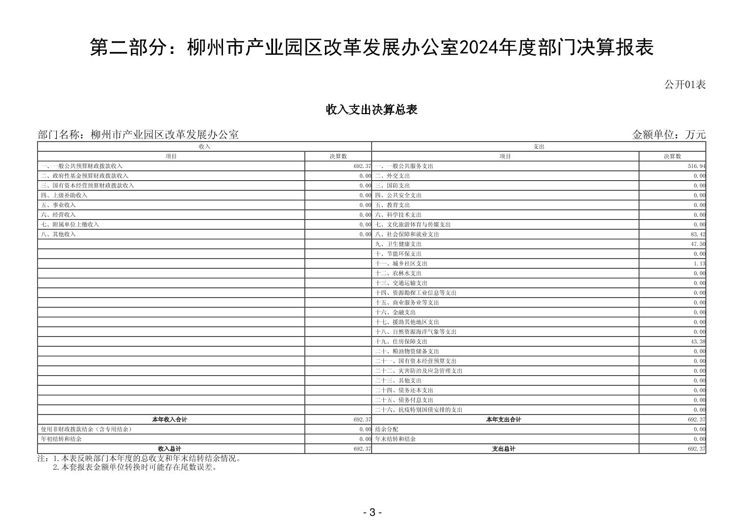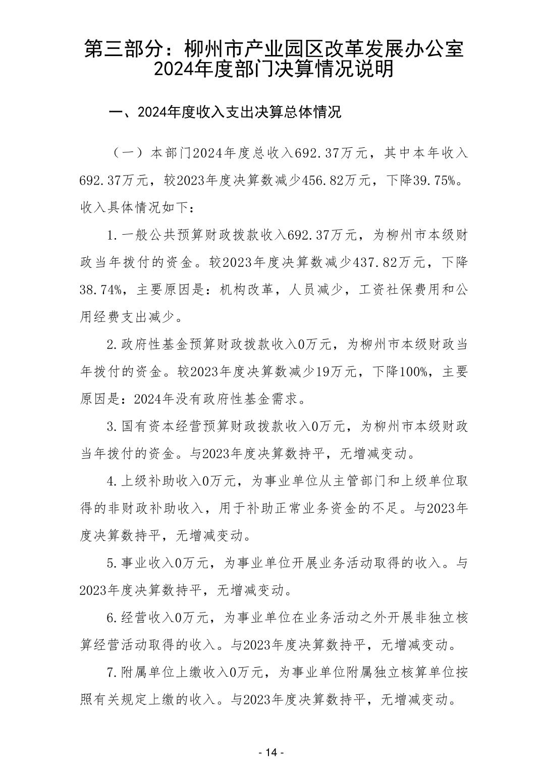 柳州市产业园区改革发展办公室2024年度部门决算 - 2024 - 广西博彩导航网网站