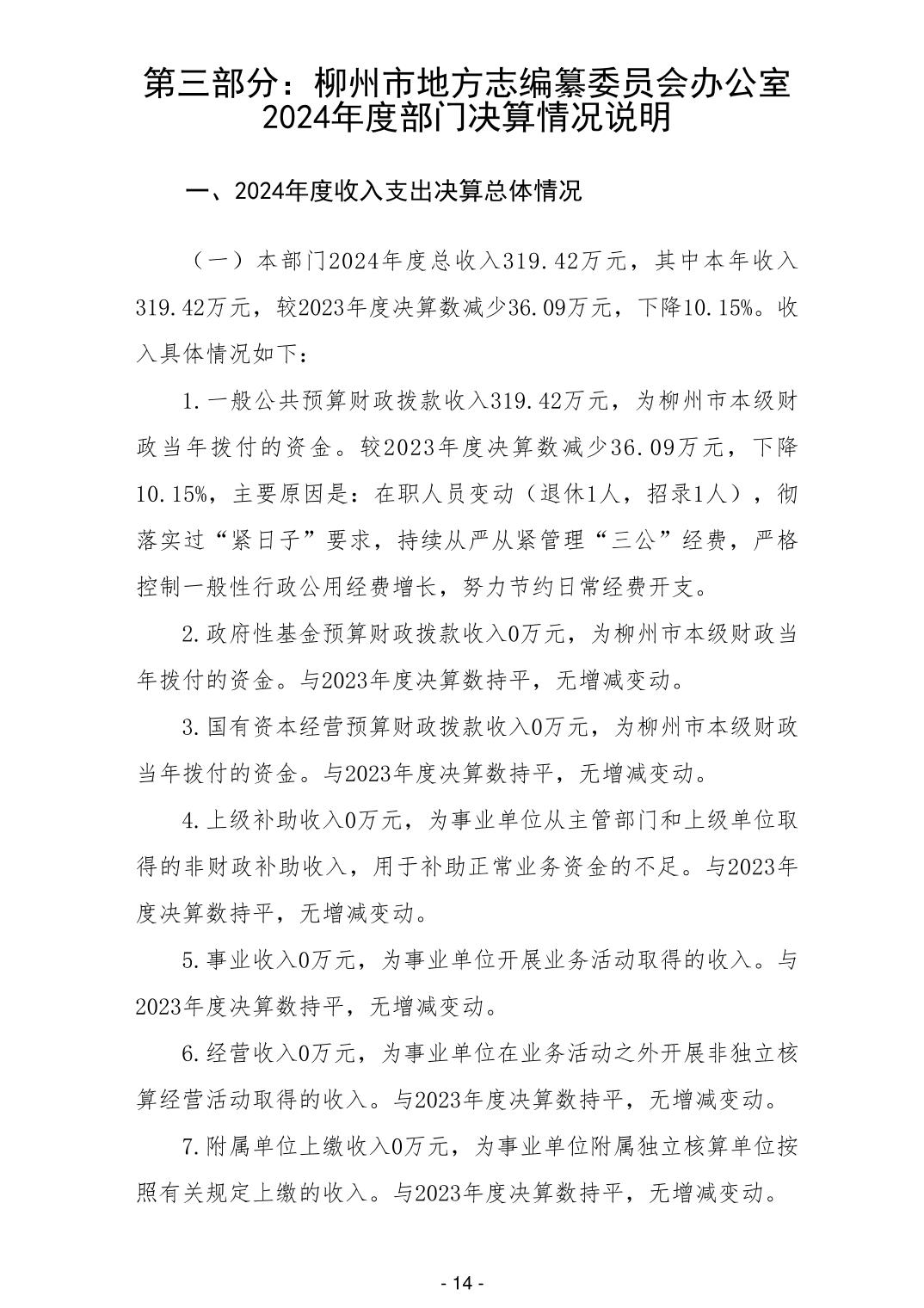 柳州市地方志编纂委员会办公室2024年度部门决算 - 2024 - 广西博彩导航网网站