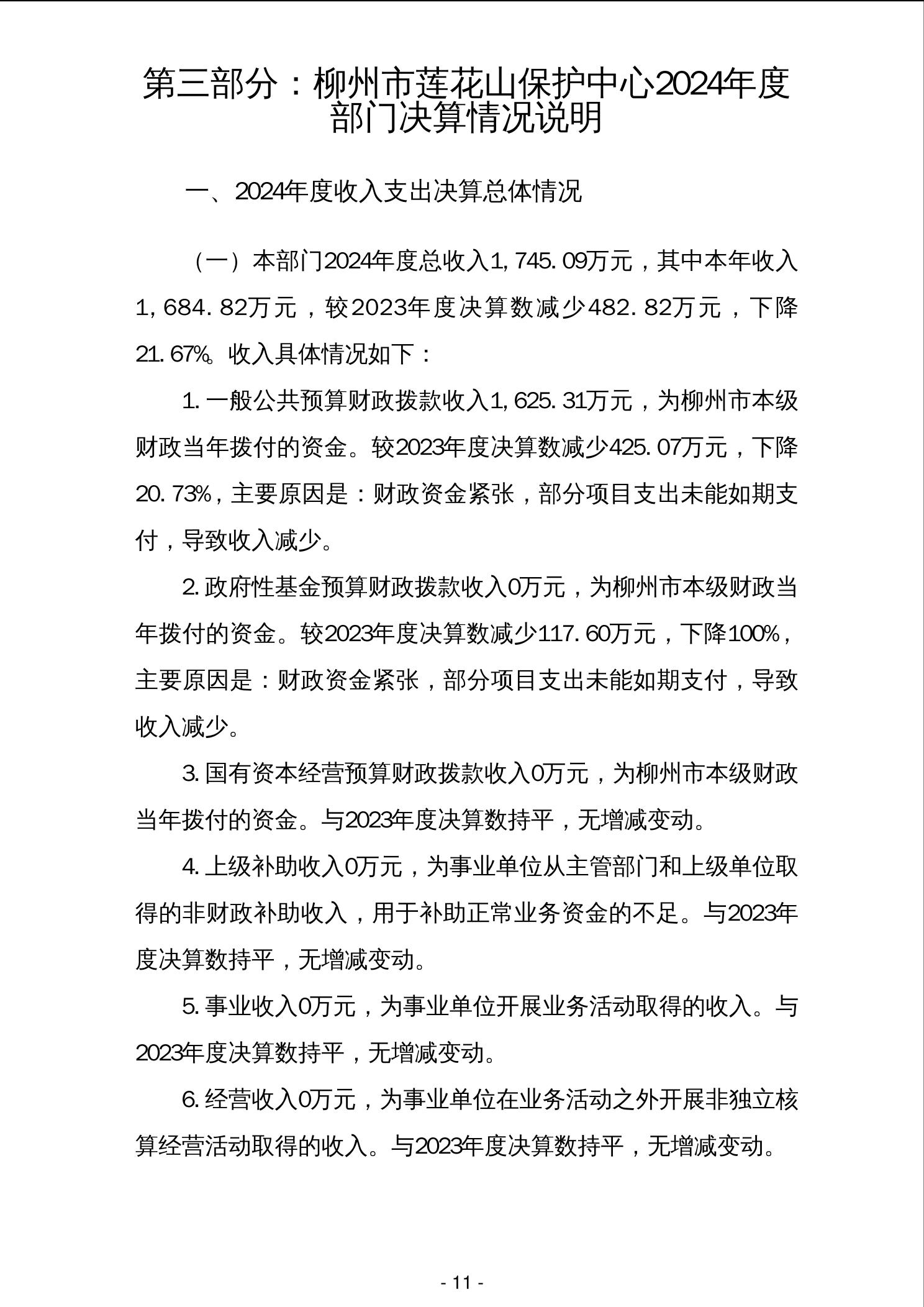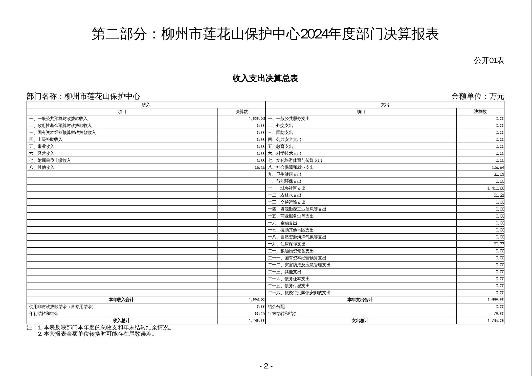 柳州市莲花山保护中心2024年度部门决算 - 2024 - 广西博彩公司网址网站