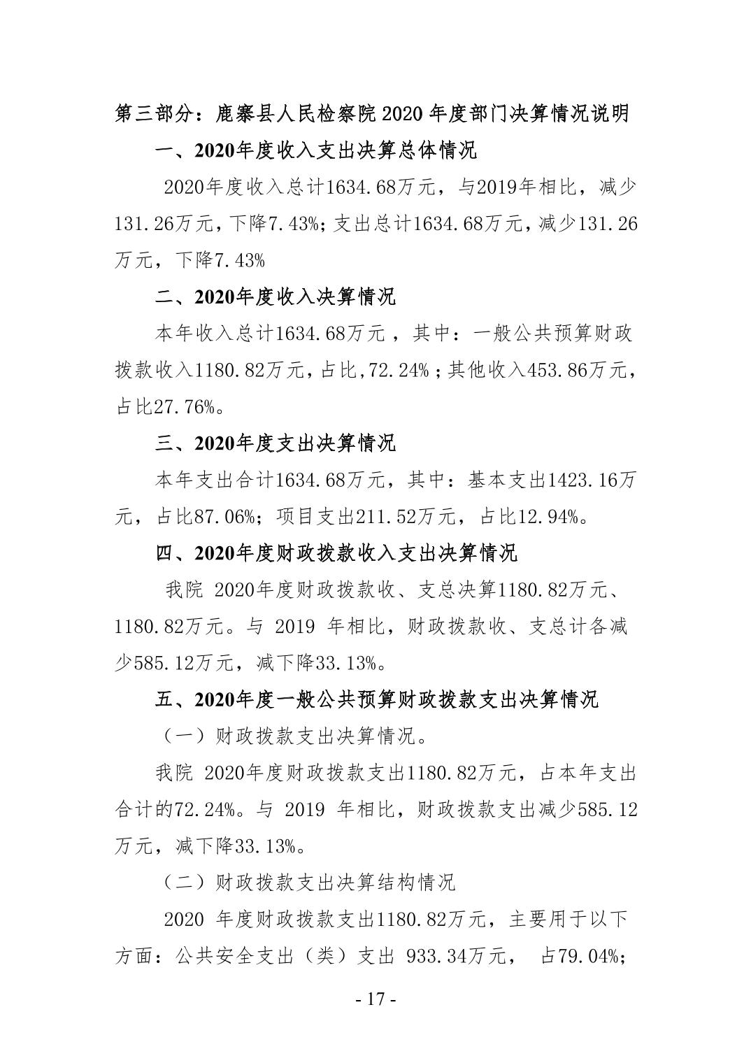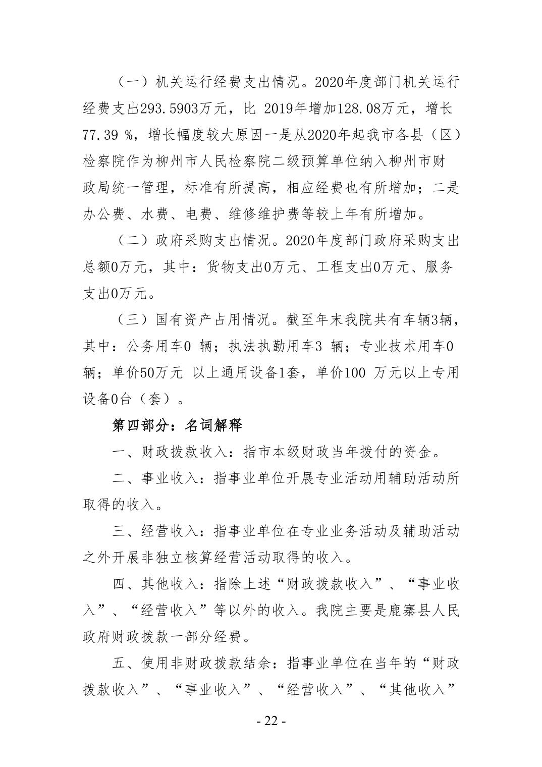 鹿寨县人民检察院2020年度部门决算 - 2020 - 广西博彩公司网址网站