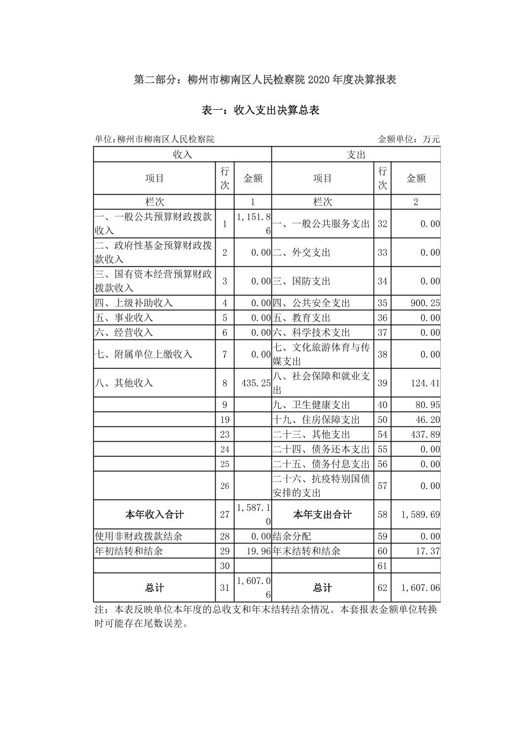 柳州市柳南区人民检察院2020年单位决算公开 - 2020 - 广西博彩导航网网站