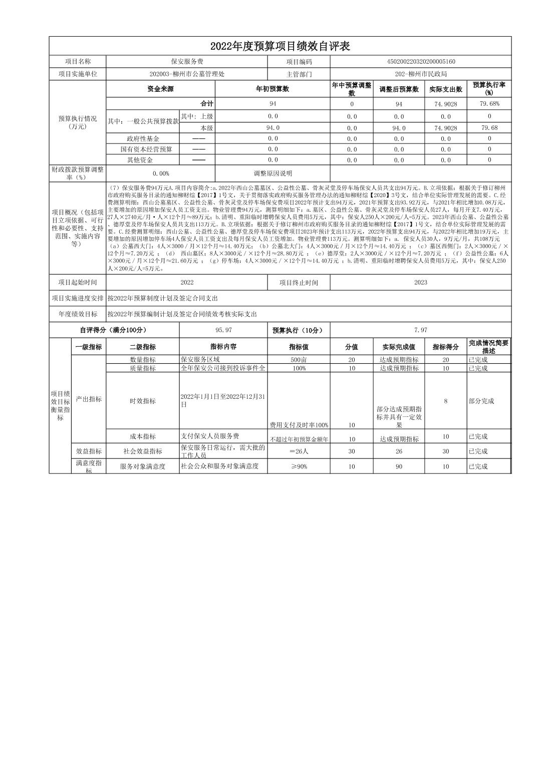 202003柳州市公墓管理处2022年度单位决算公开 - 2022 - 广西博彩公司网址网站