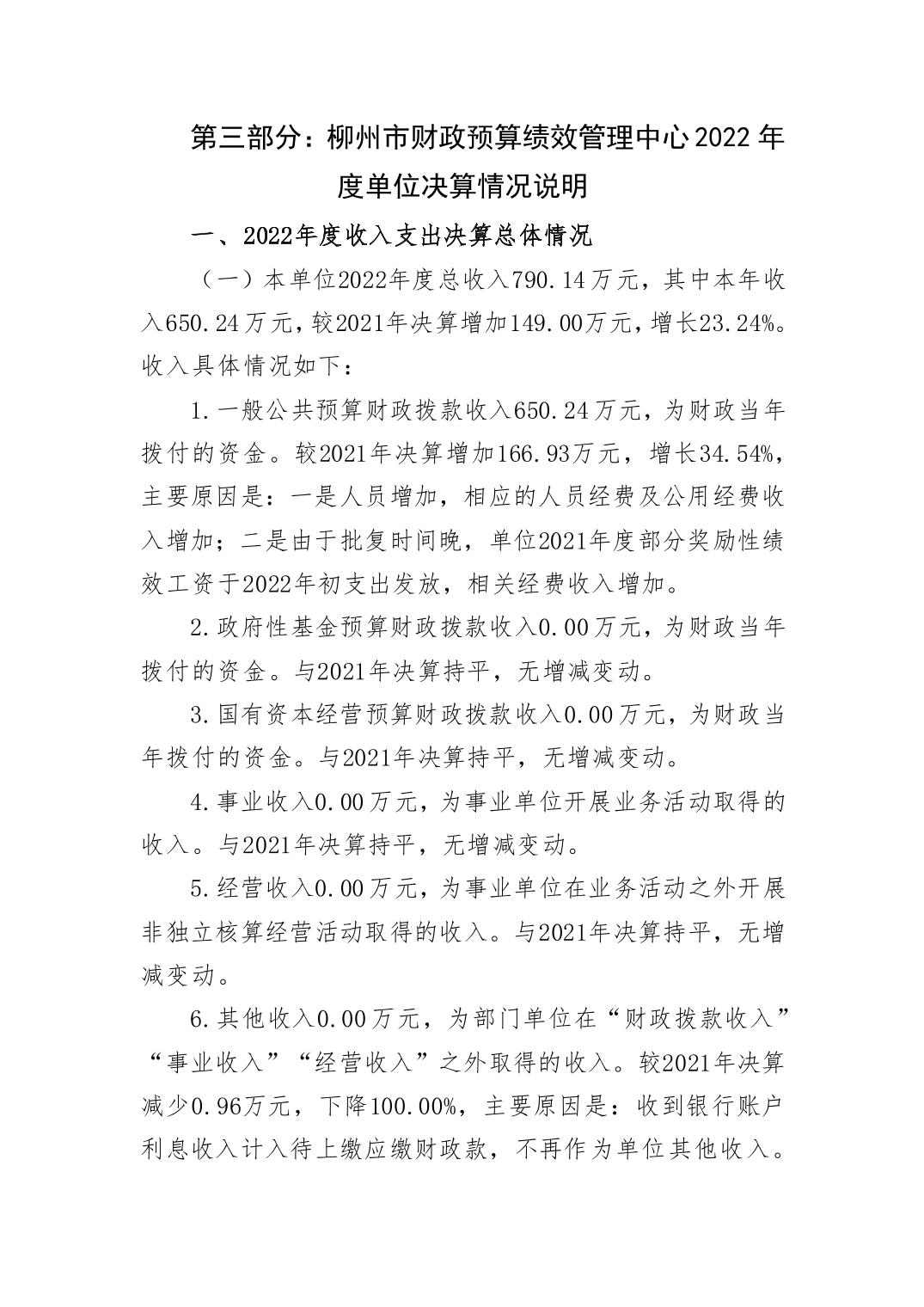 柳州市财政预算绩效管理中心2022年度单位决算 - 2022 - 广西博彩公司网址网站