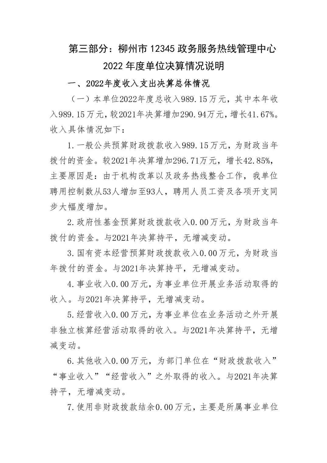 柳州市12345政务服务热线管理中心2022年度单位决算 - 2022 - 广西博彩导航网网站