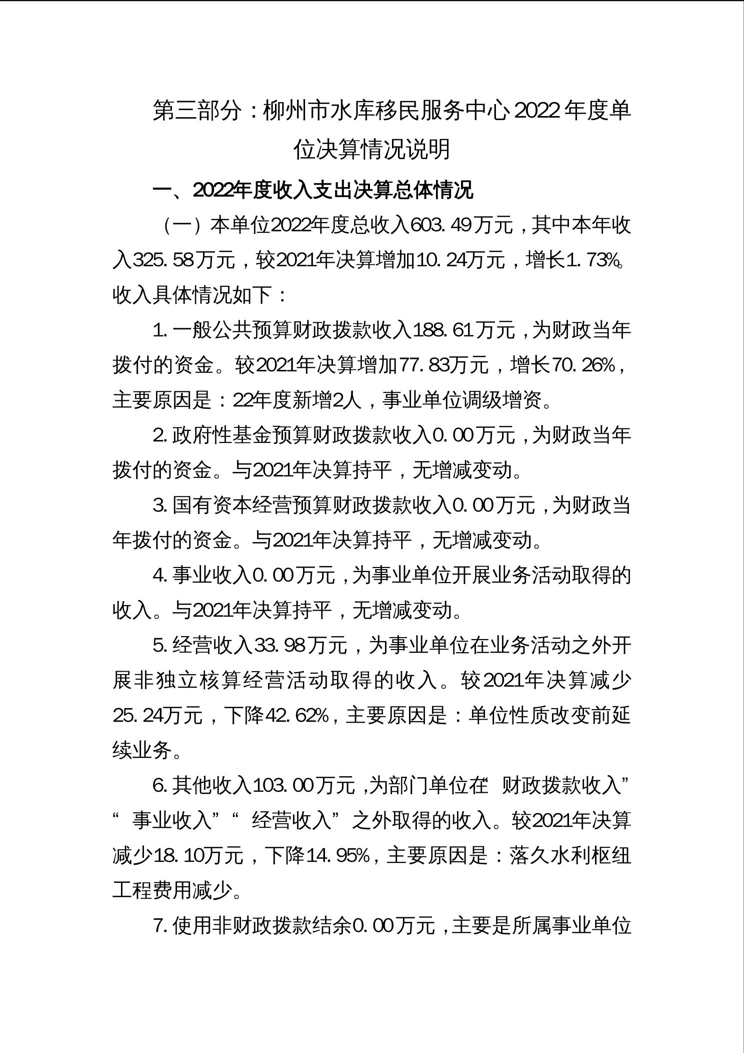 柳州市水库移民服务中心2022年度单位决算 - 2022 - 广西博彩公司网址网站