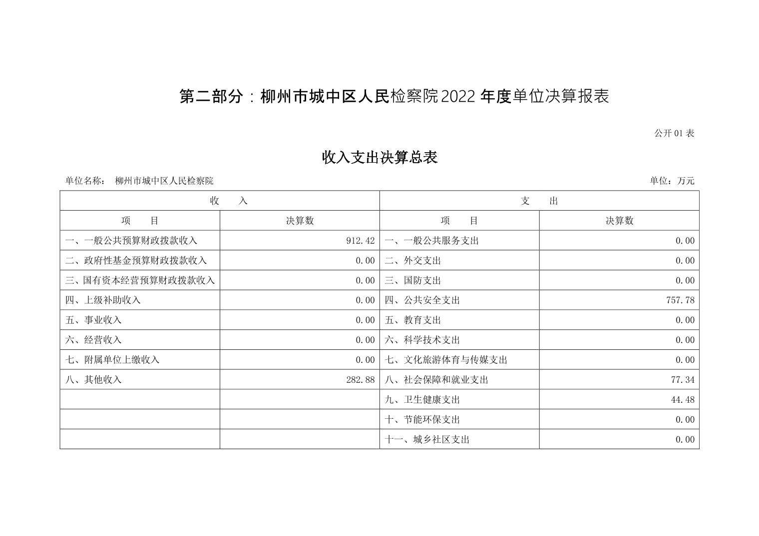 柳州市城中区人民检察院2022年度单位决算 - 2022 - 广西博彩公司网址网站