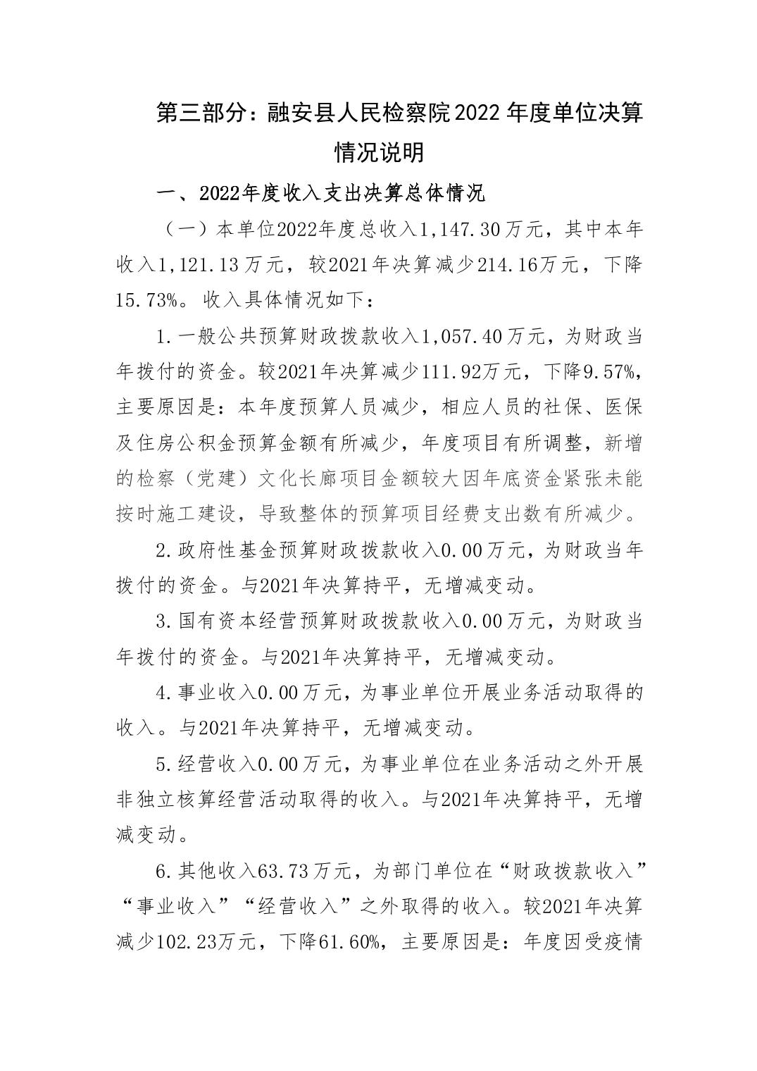 融安县人民检察院2022年度单位决算 - 2022 - 广西博彩公司网址网站