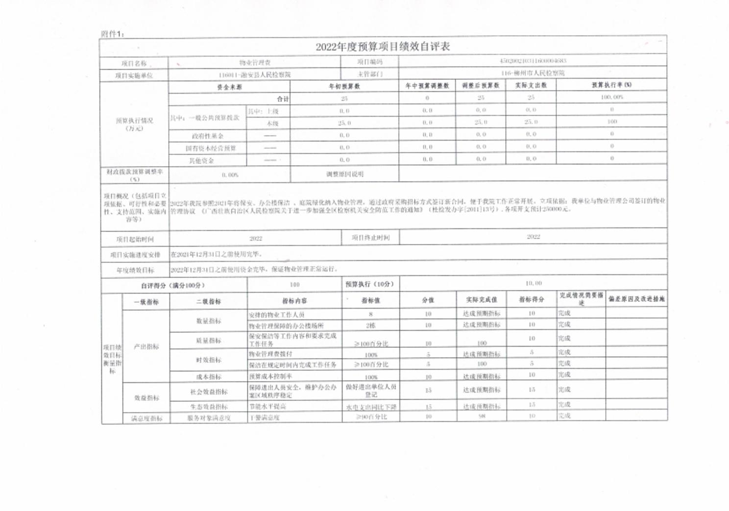 2022年度物业管理费预算项目绩效自评表.xls