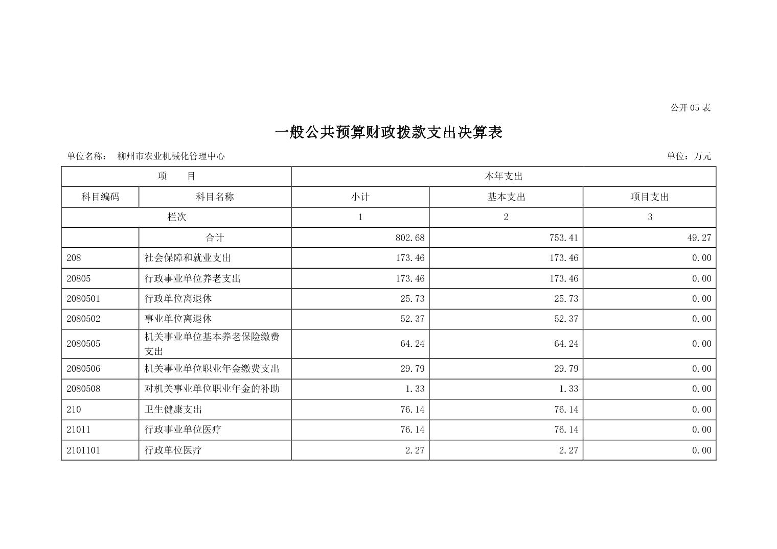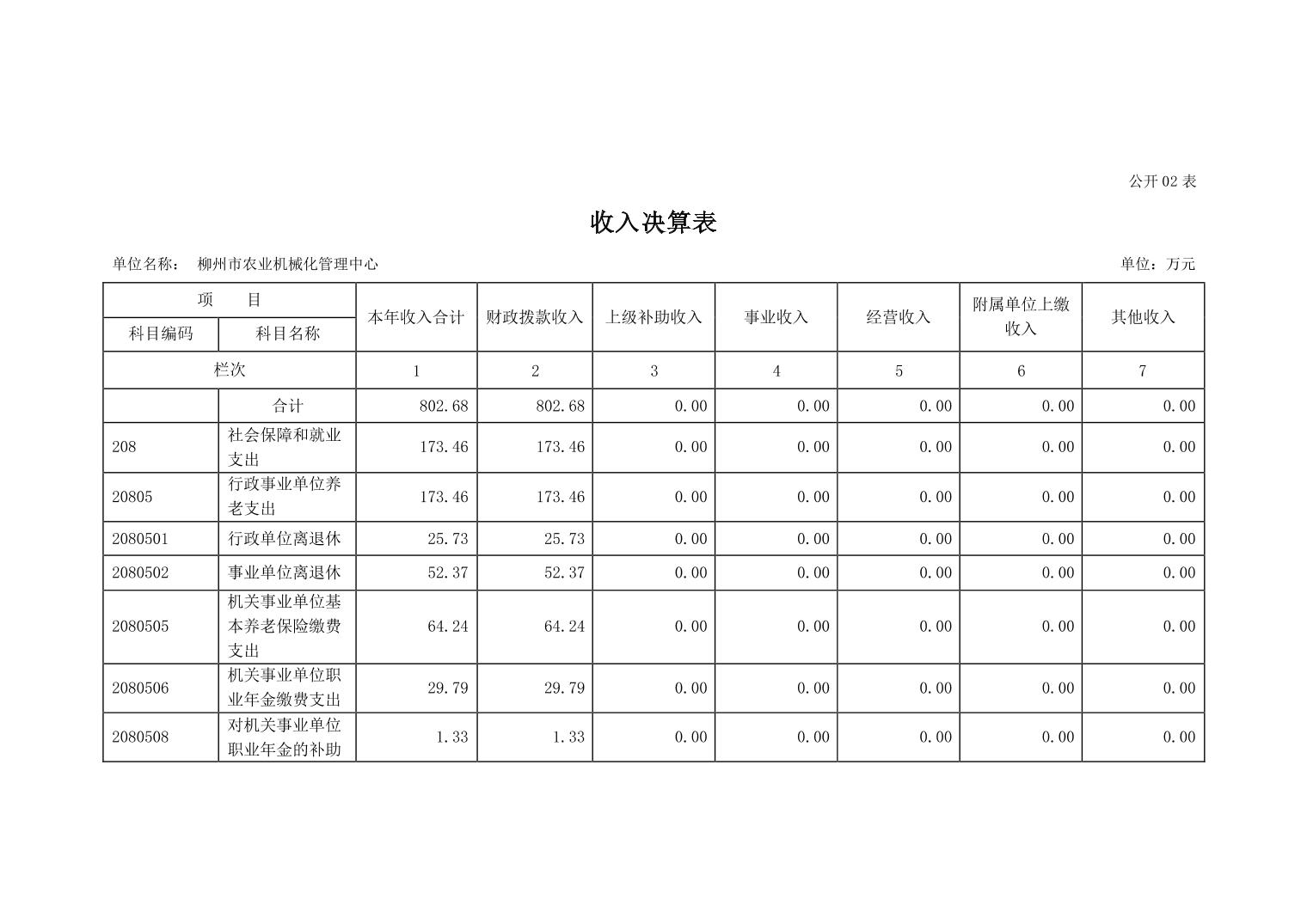 502002柳州市农业机械化管理中心2022年度单位决算