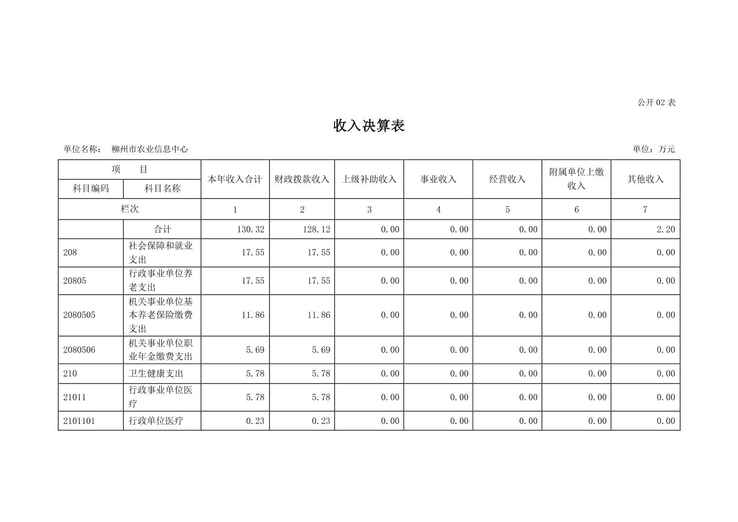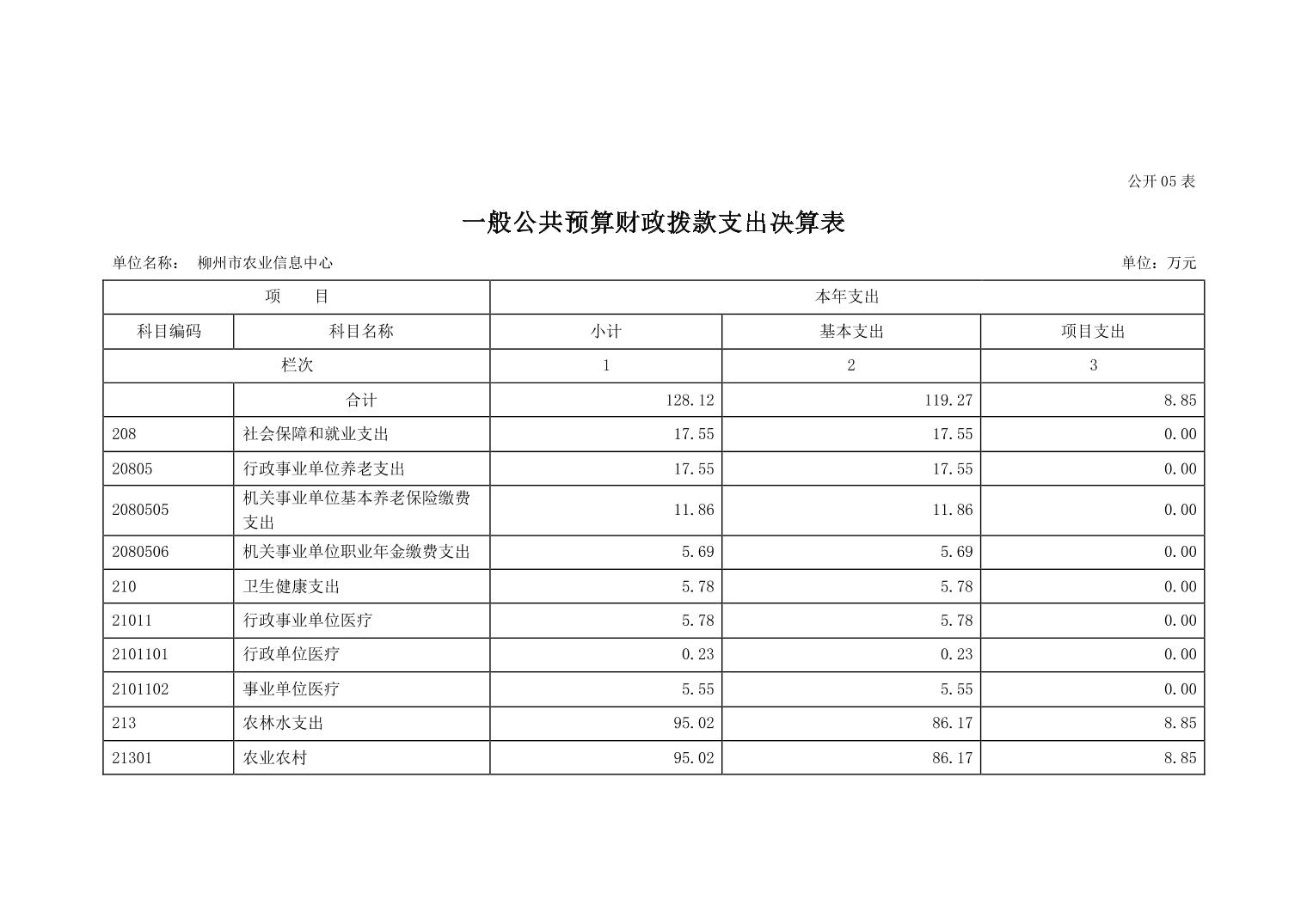 502005柳州市农业信息中心2022年度单位决算