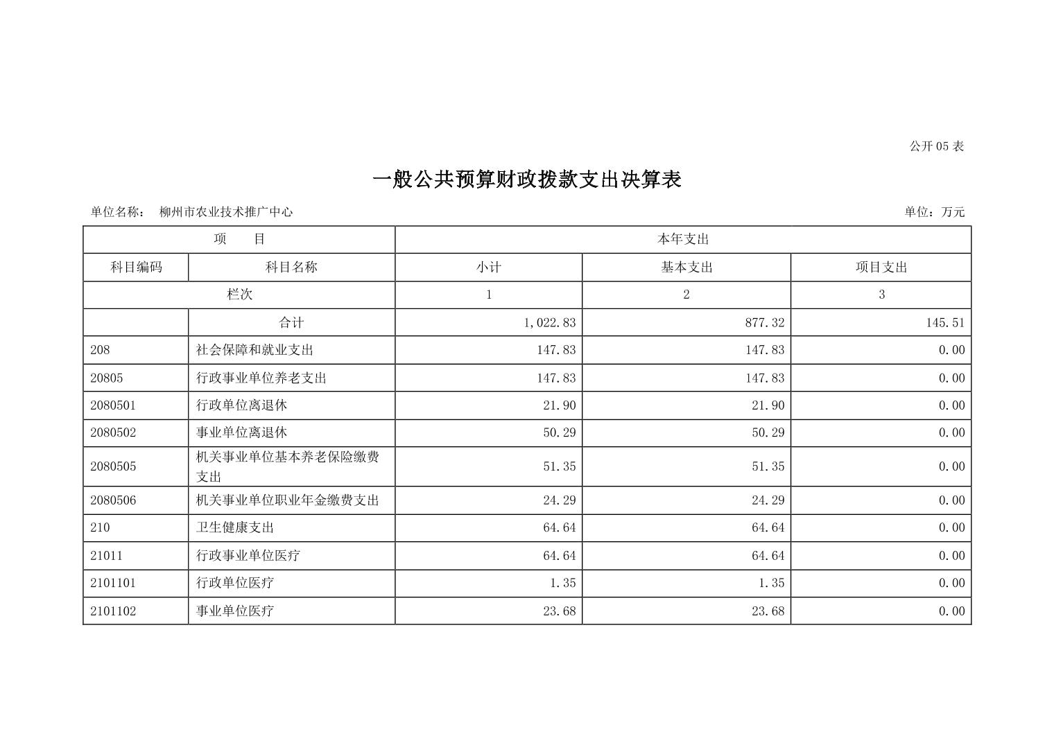 502009柳州市农业技术推广中心2022年度单位决算
