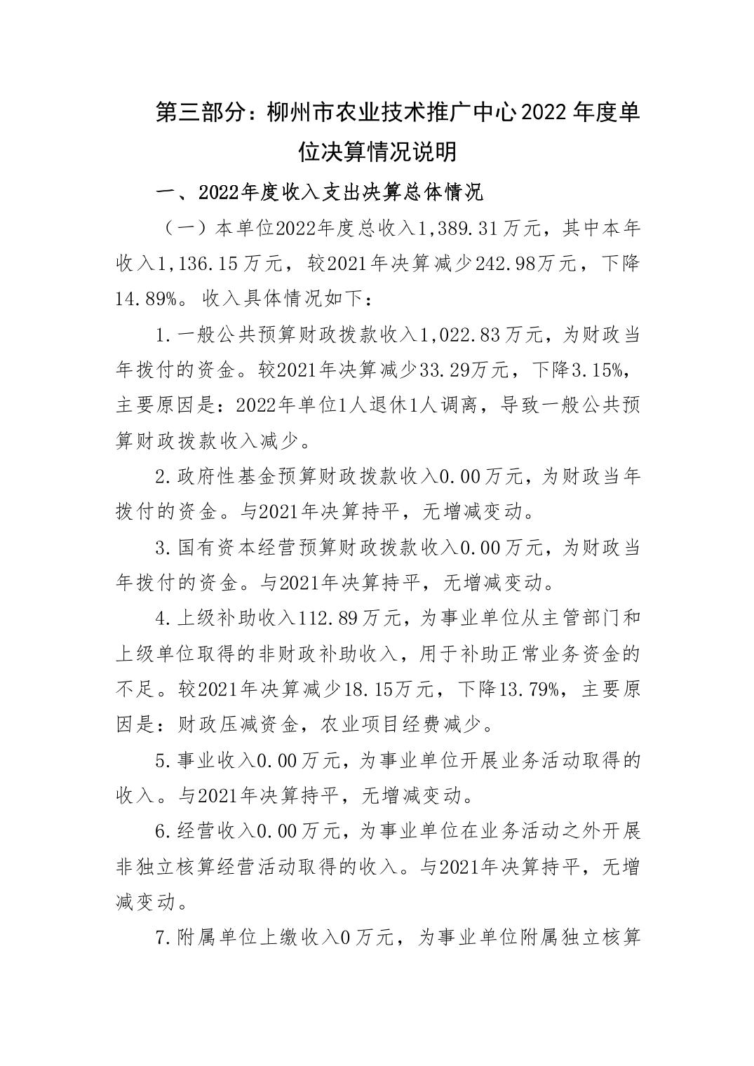 502009柳州市农业技术推广中心2022年度单位决算 - 2022 - 广西博彩导航网网站