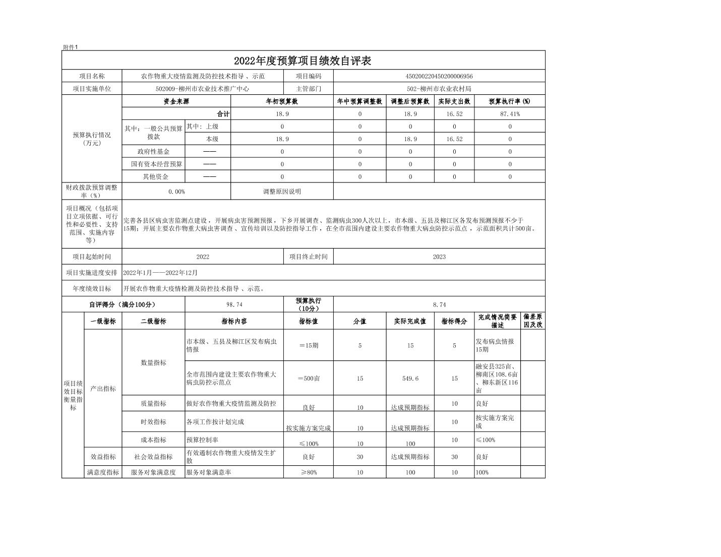 柳州市农业技术推广中心2022年度本级预算项目支出绩效自评表.pdf