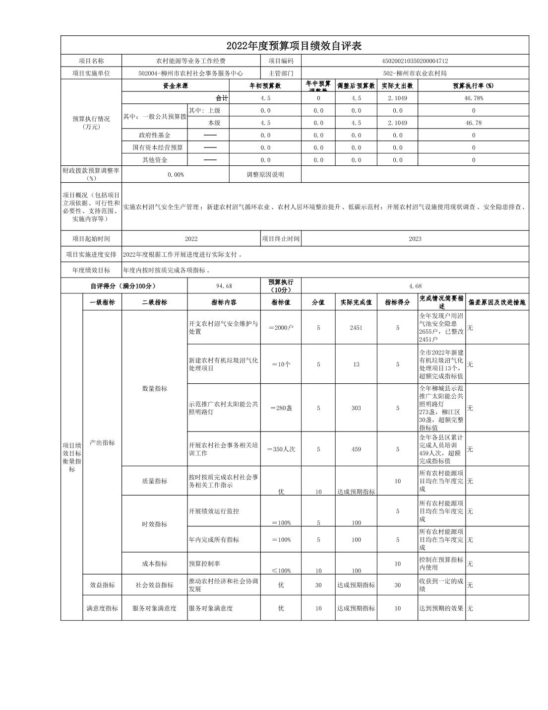 柳州市农村社会事务服务中2022年度本级预算项目支出绩效自评表.pdf