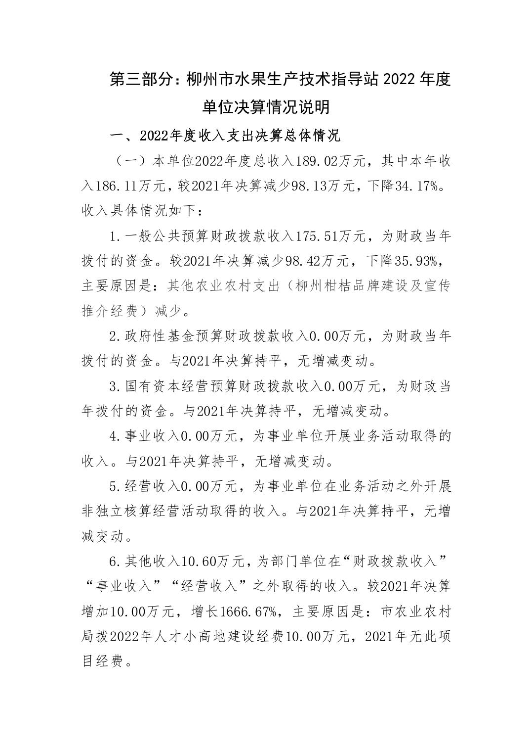 502006柳州市水果生产技术指导站2022年度单位决算 - 2022 - 广西博彩导航网网站