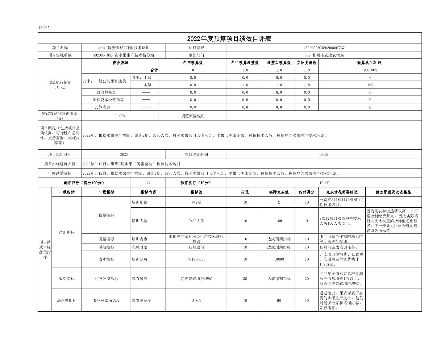 柳州市水果生产技术指导站2022年度本级预算项目支出绩效自评表.pdf