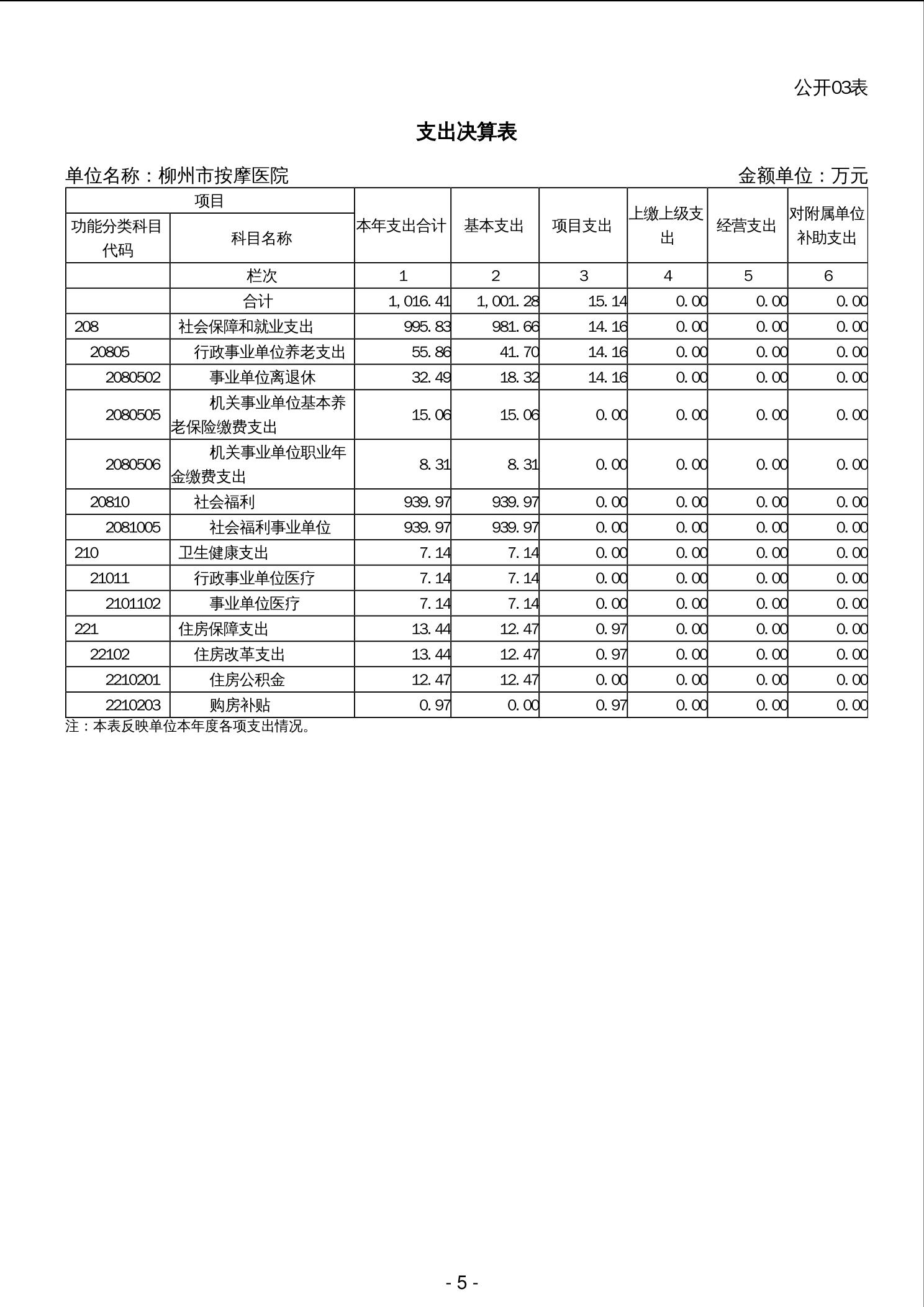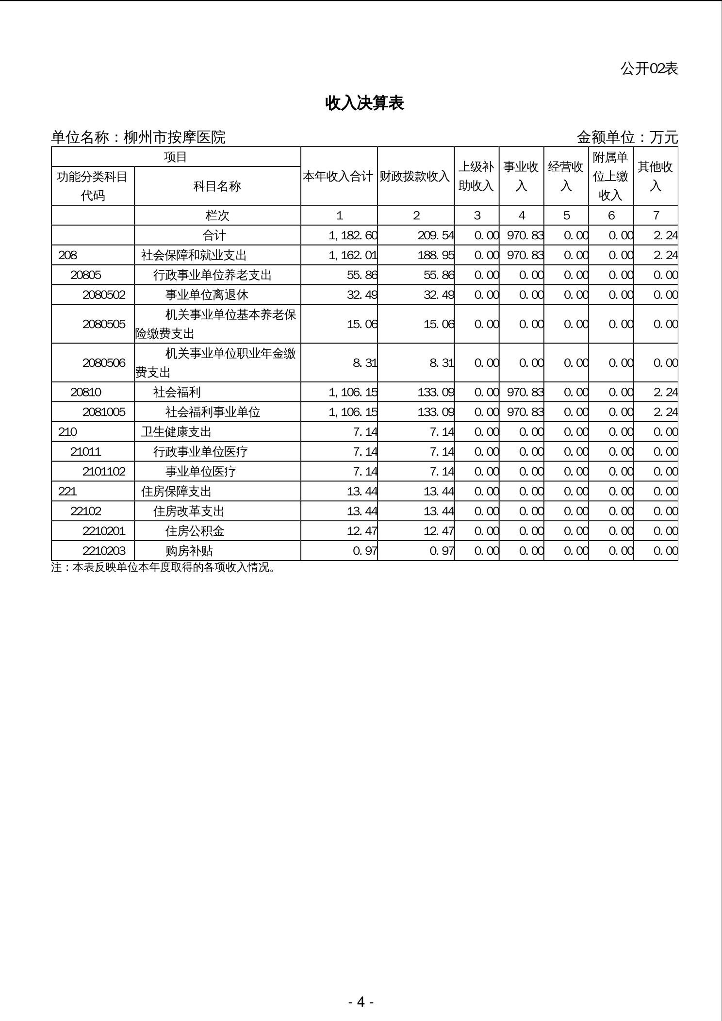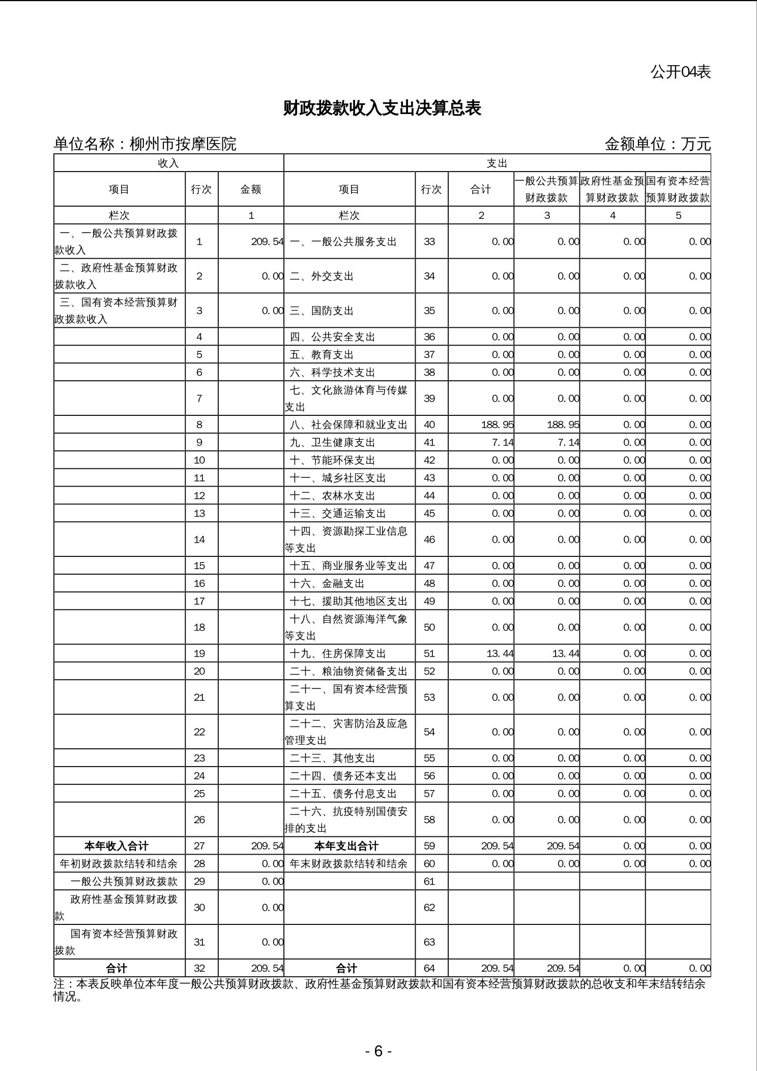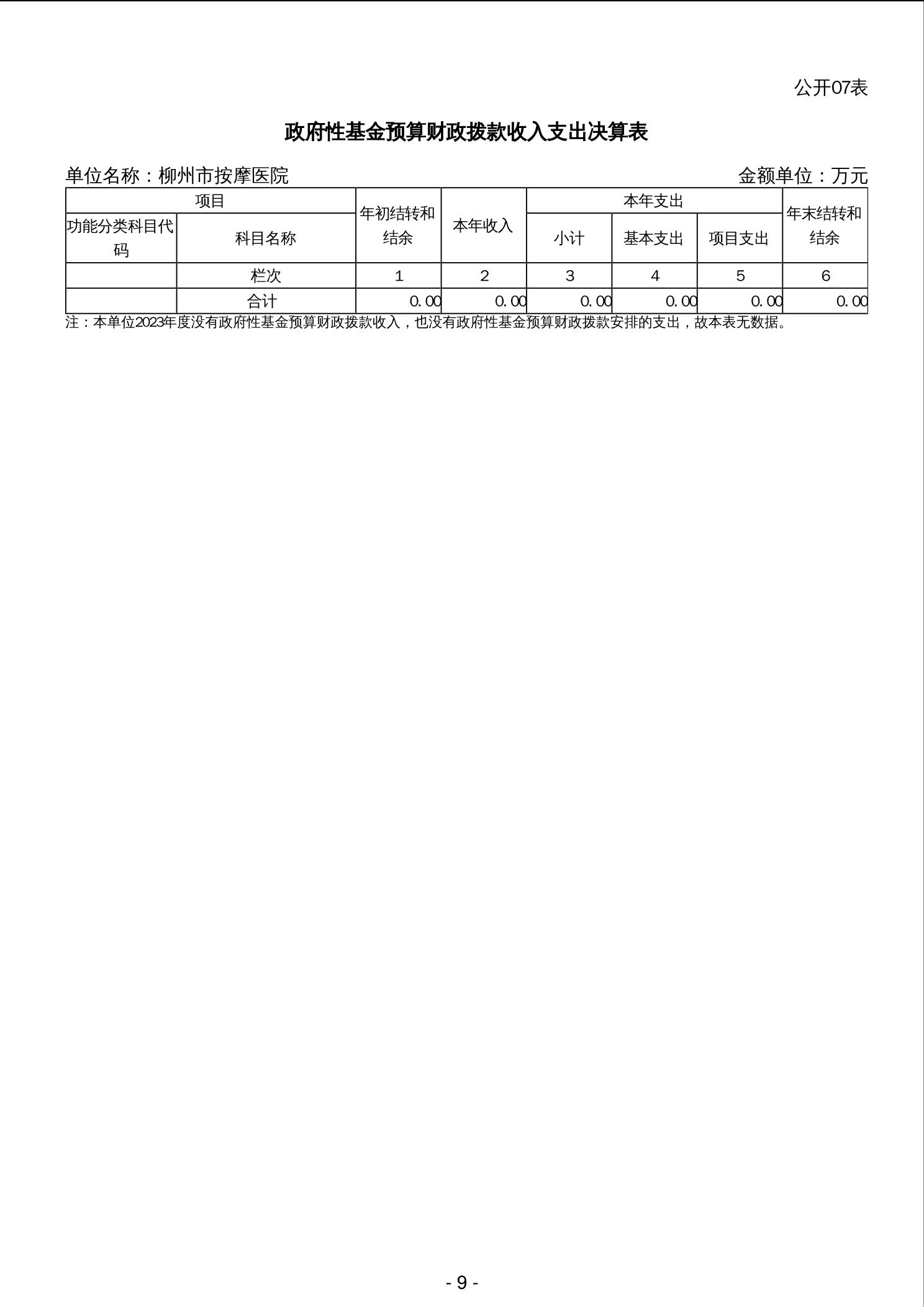 202006柳州市按摩医院2023年度单位决算