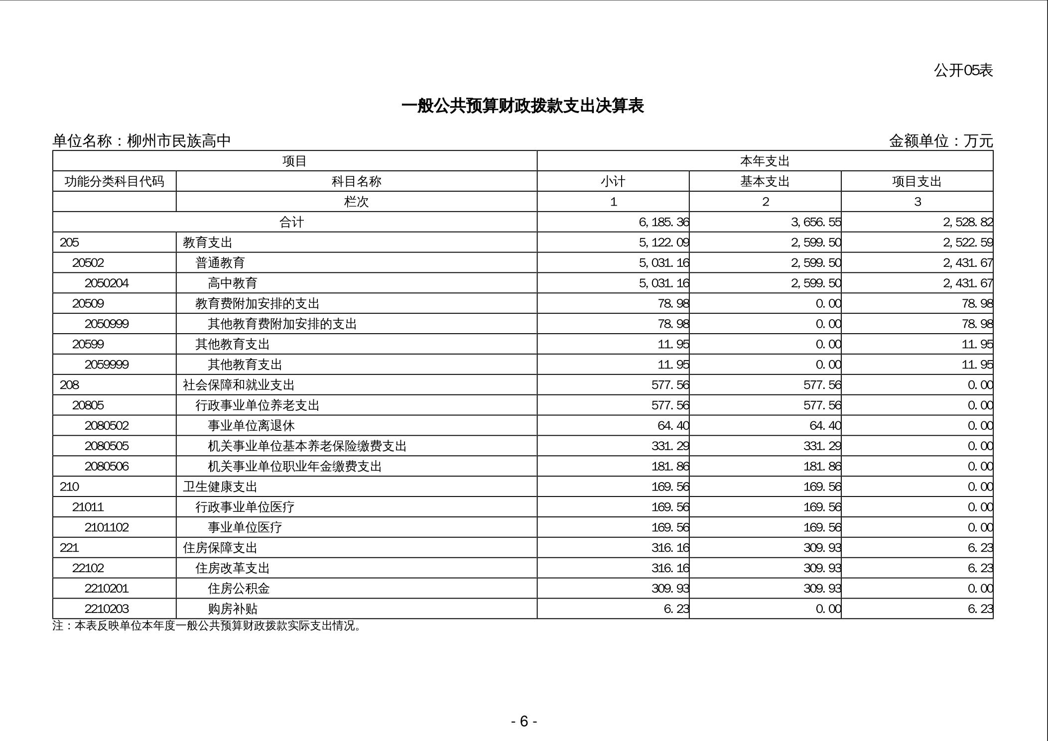 柳州市民族高中2024年度单位决算