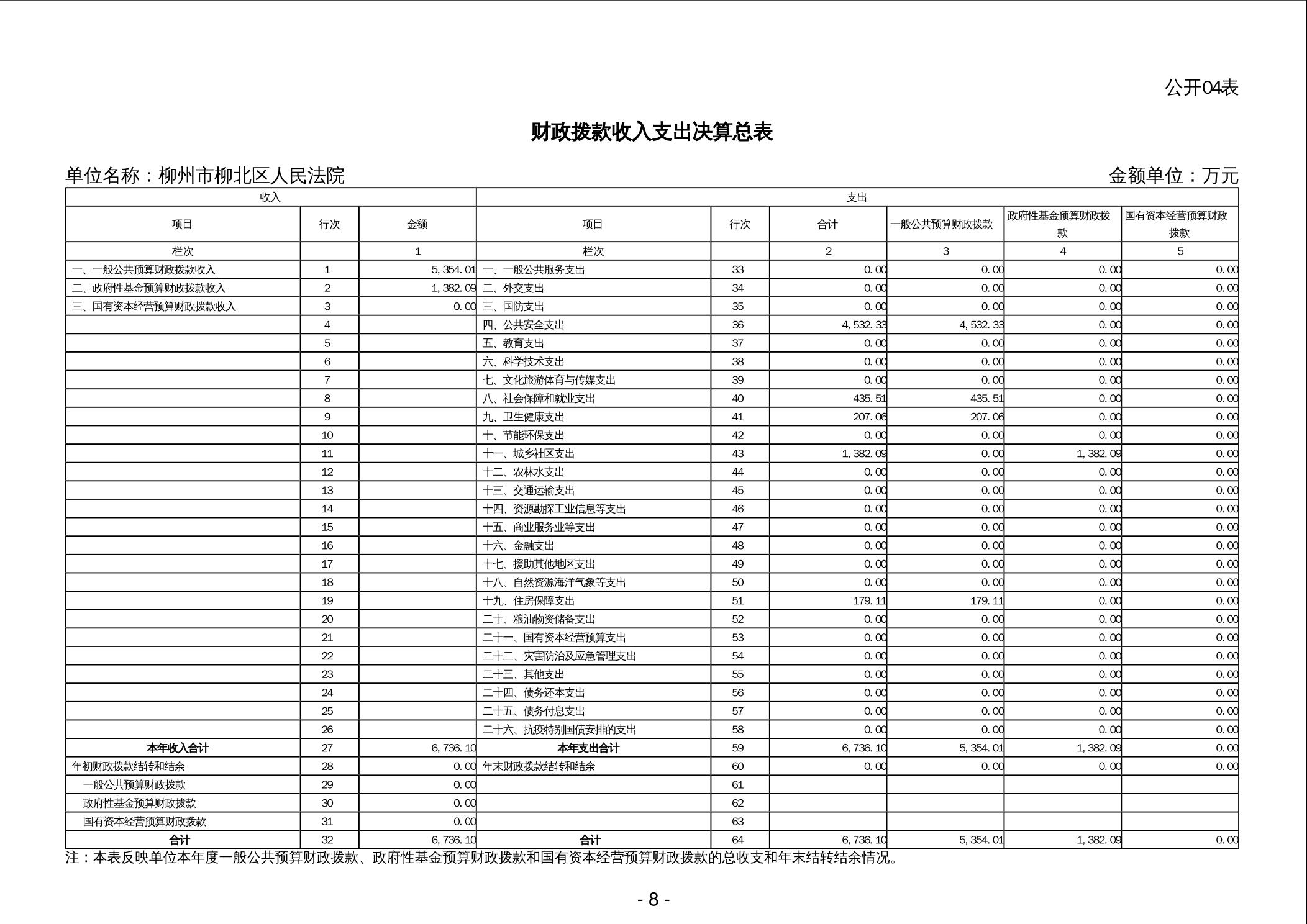 柳州市柳北区人民法院2024年度单位决算 - 2024 - 广西博彩导航网网站