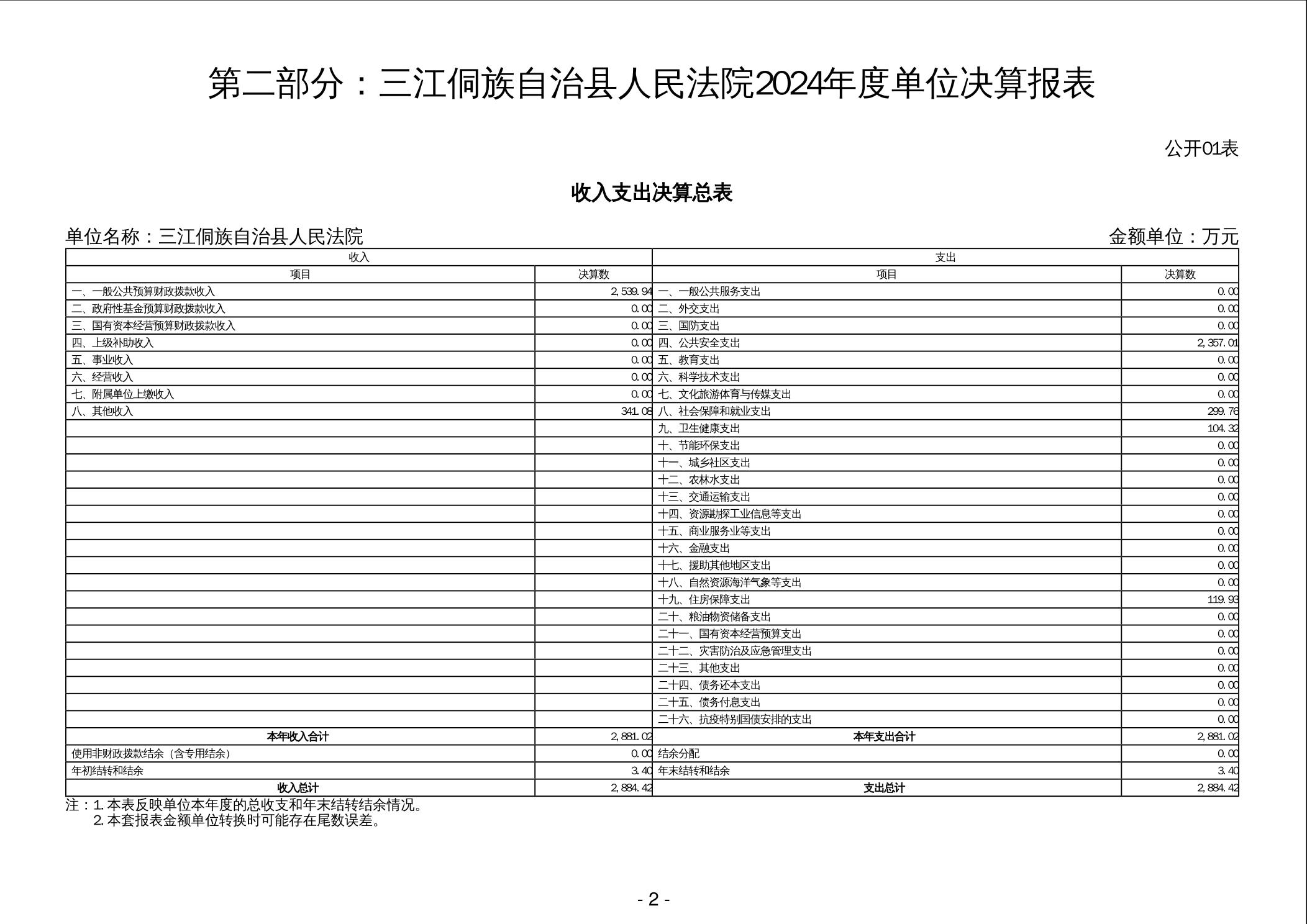 三江侗族自治县人民法院2024年度单位决算公开