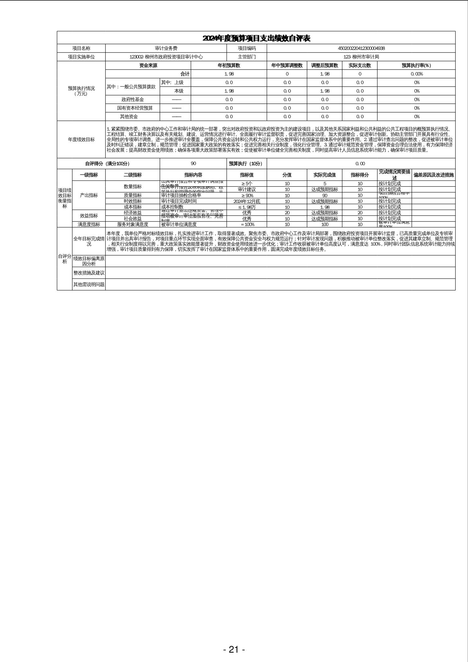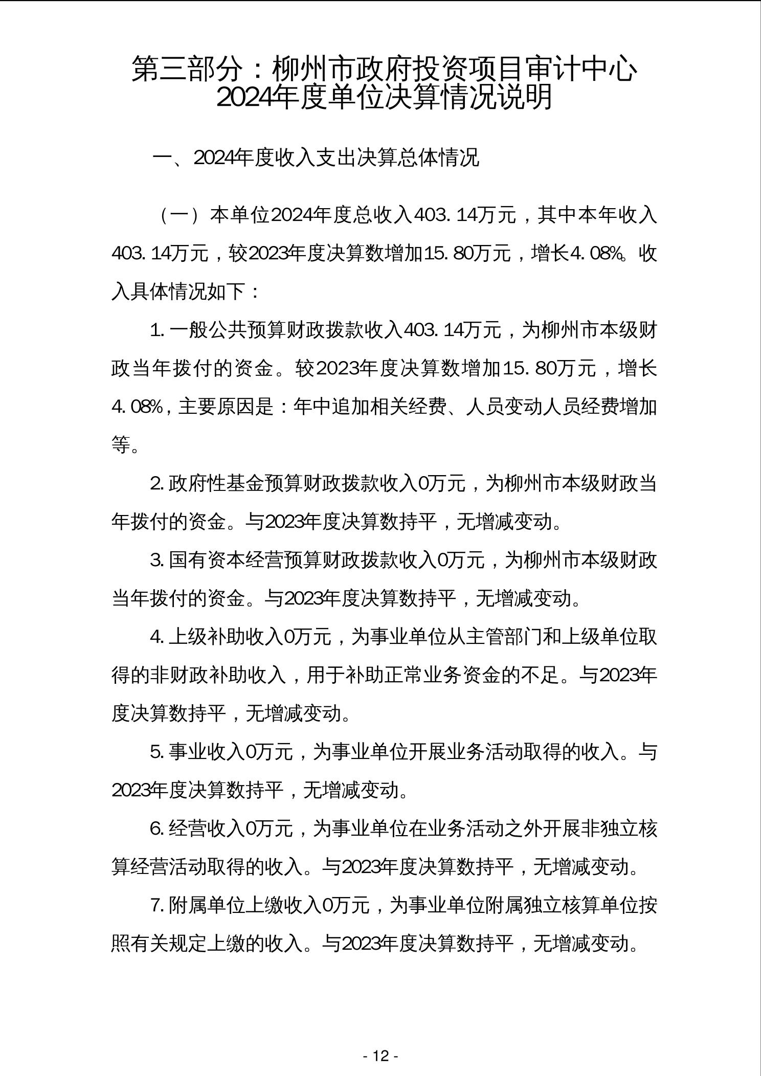 柳州市政府投资项目审计中心2024年度单位决算 - 2024 - 广西博彩公司网址网站
