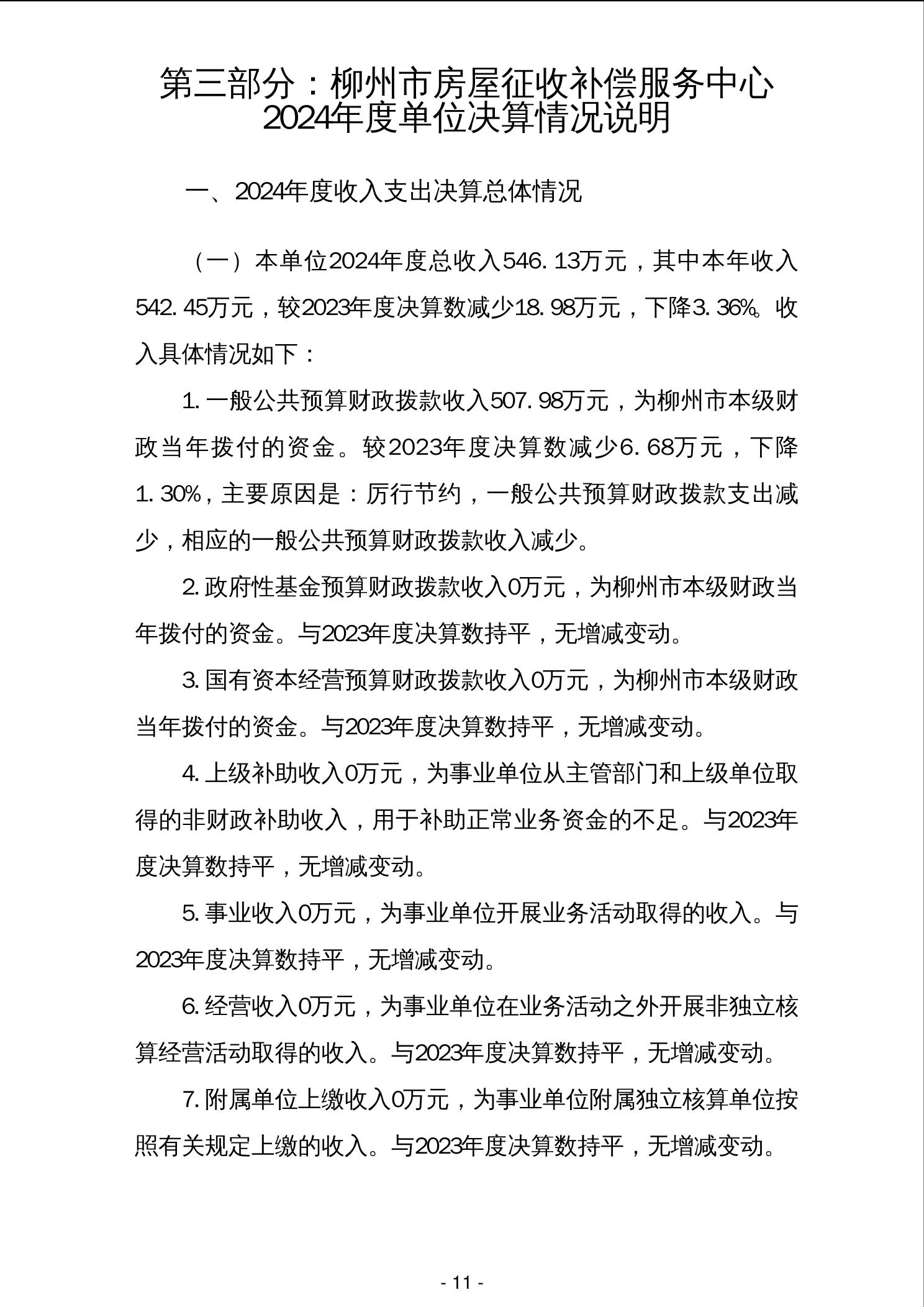 柳州市房屋征收补偿服务中心2024年度单位决算 - 2024 - 广西博彩公司网址网站