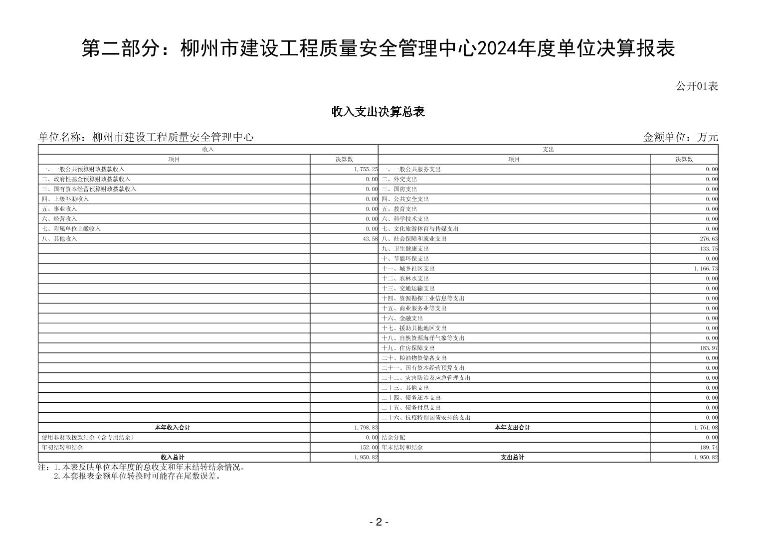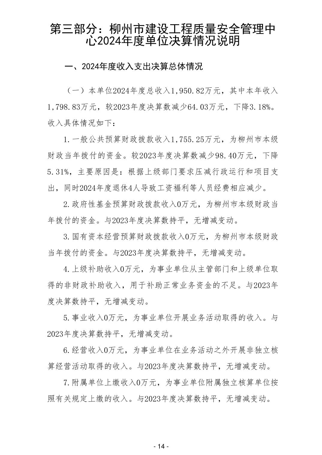柳州市建设工程质量安全管理中心2024年度单位决算 - 2024 - 广西博彩公司网址网站