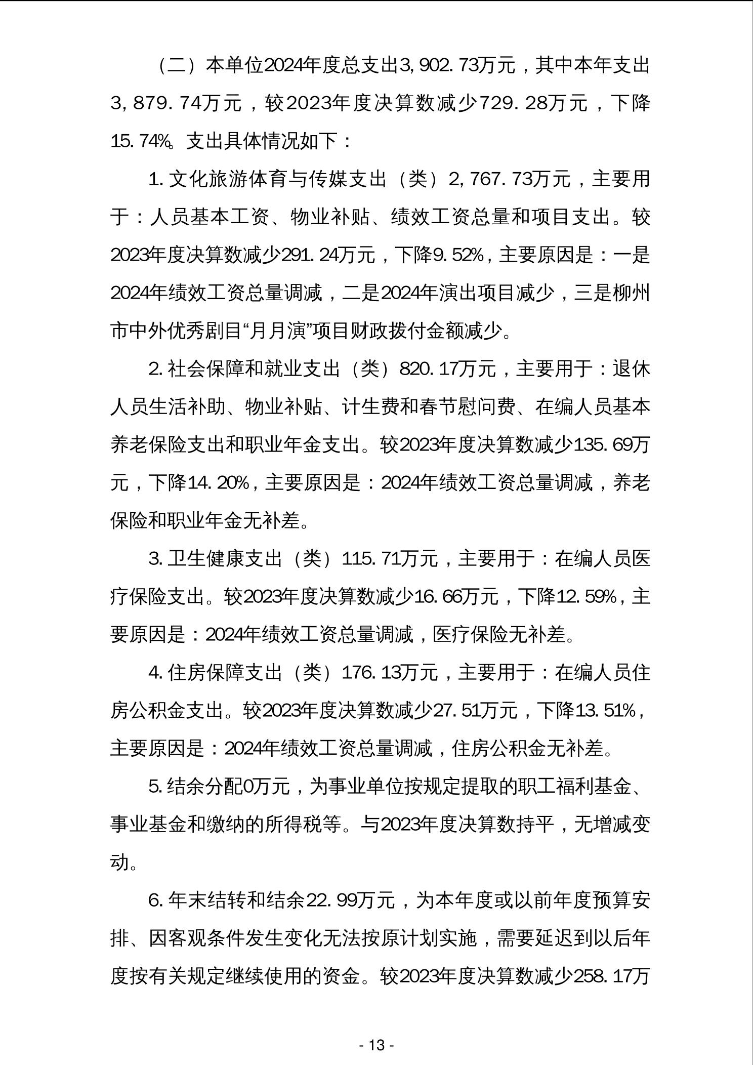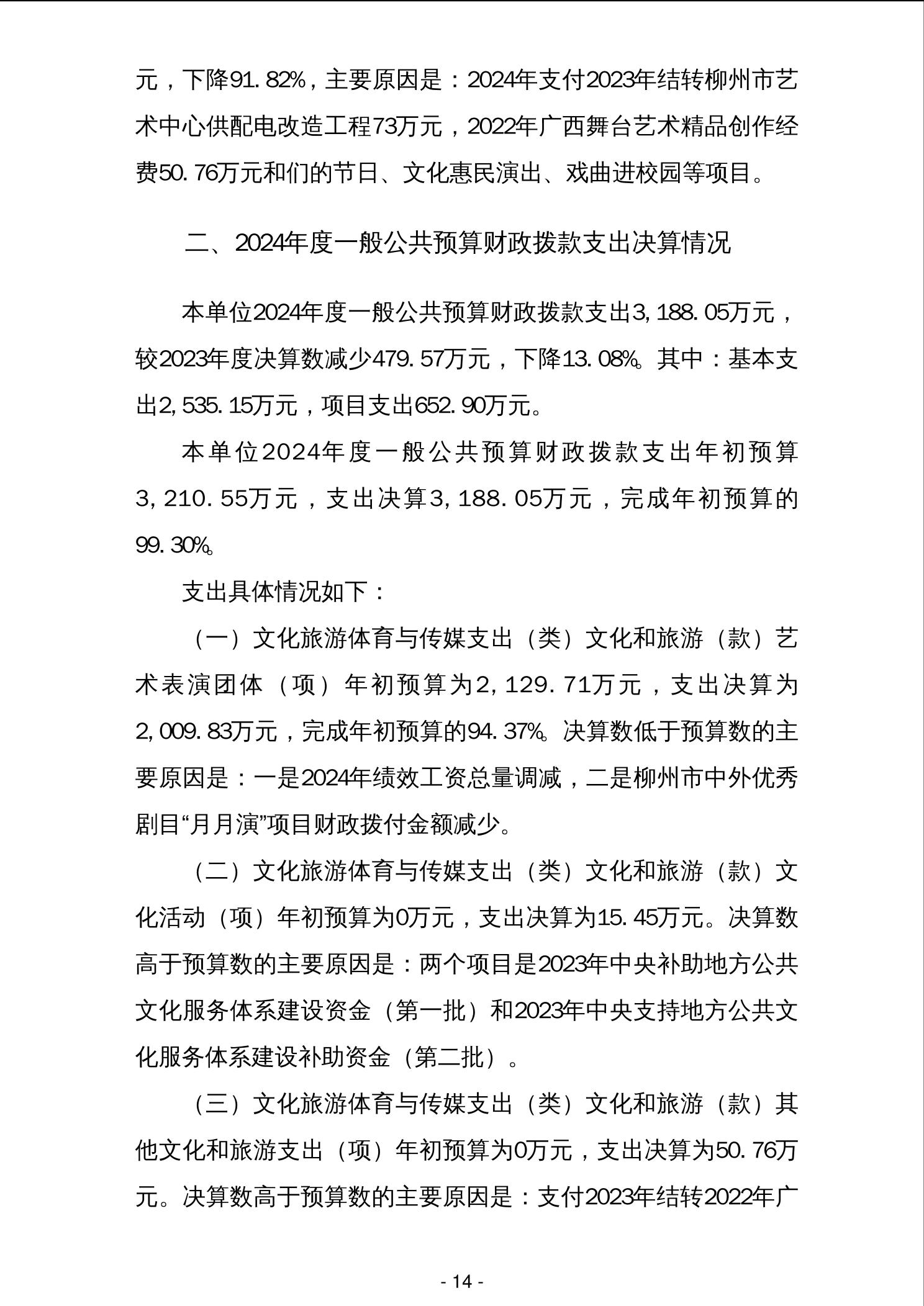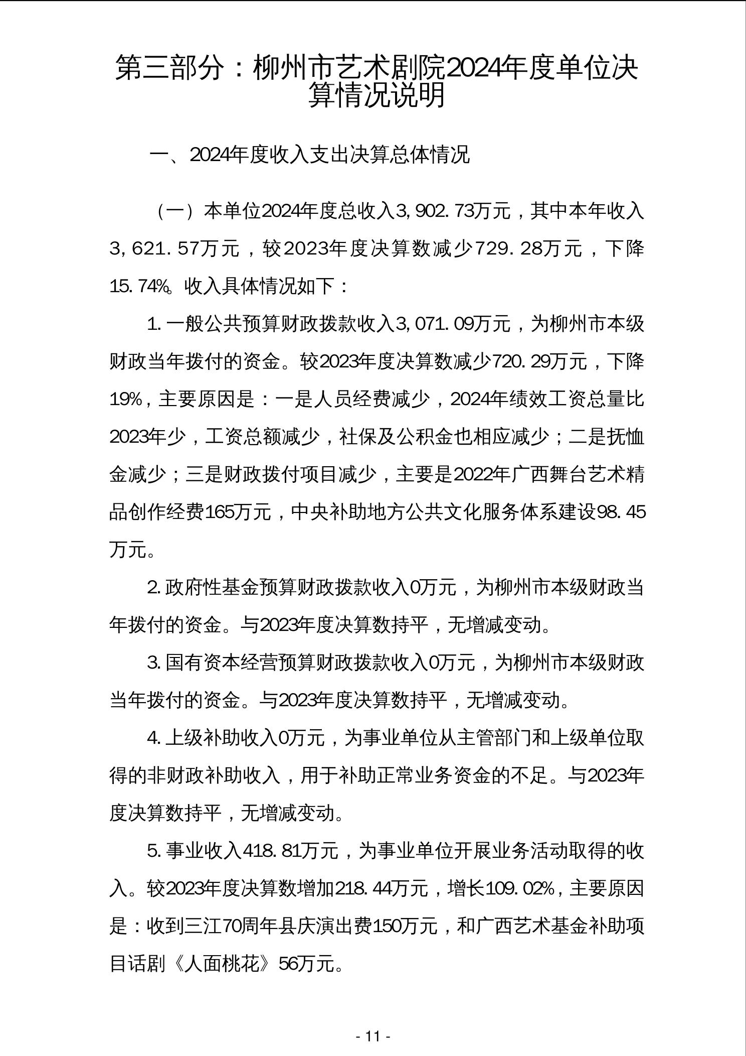 柳州市艺术剧院2024年度单位决算 - 2024 - 广西博彩导航网网站