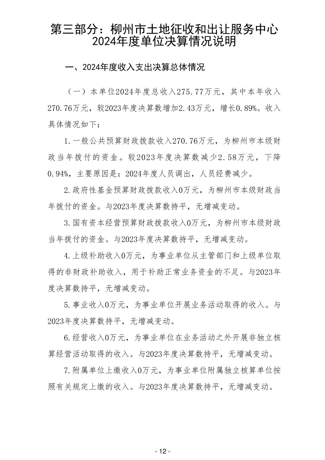 柳州市土地征收和出让服务中心2024年度单位决算 - 2024 - 广西博彩公司网址网站