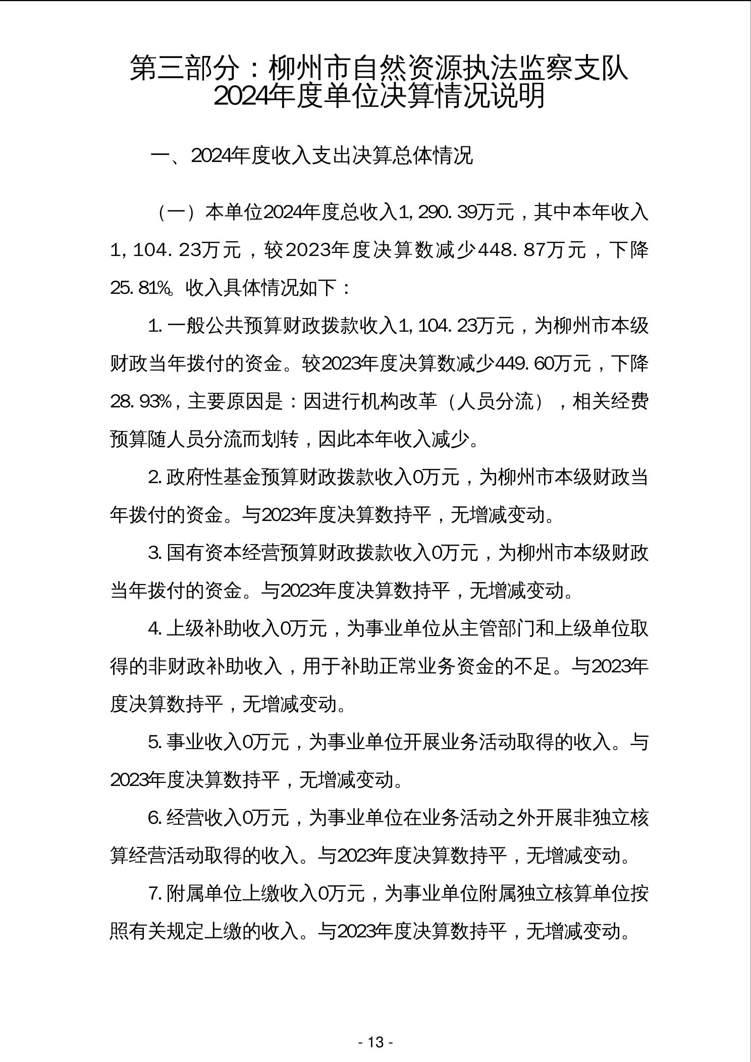 柳州市自然资源执法监察支队2024年度单位决算 - 2024 - 广西博彩导航网网站