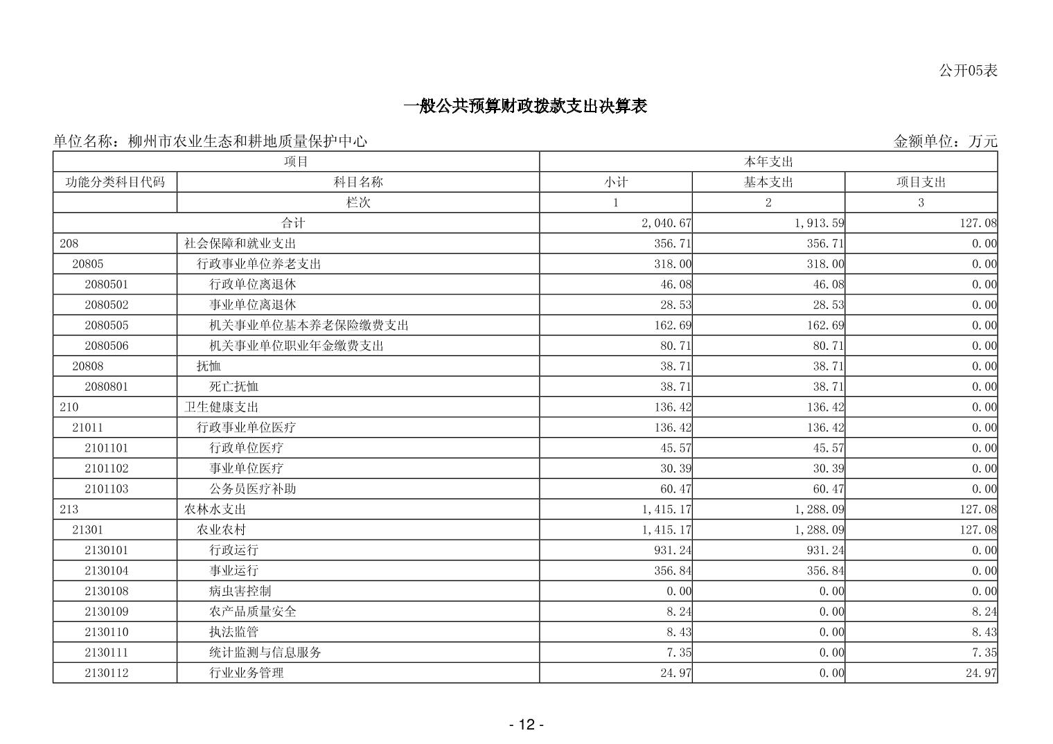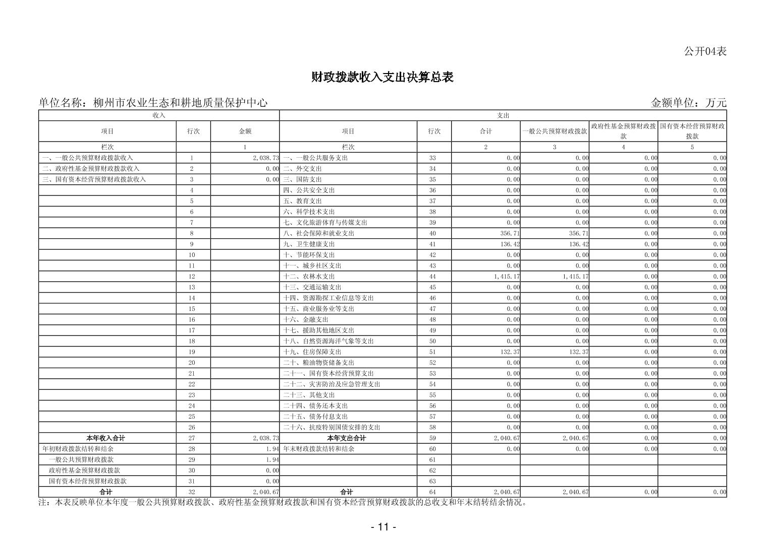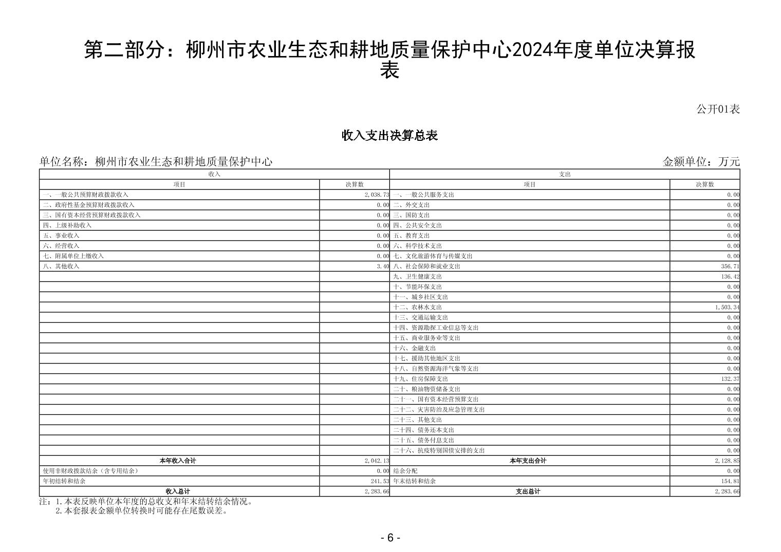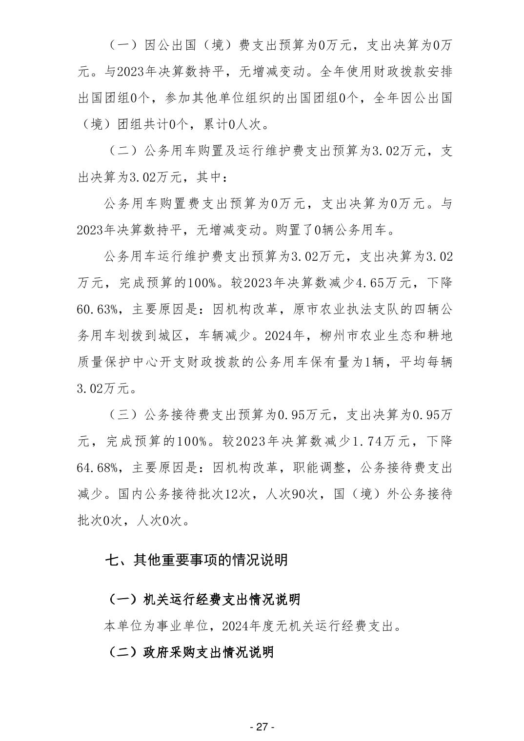 柳州市农业生态和耕地质量保护中心2024年度单位决算 - 2024 - 广西博彩公司网址网站